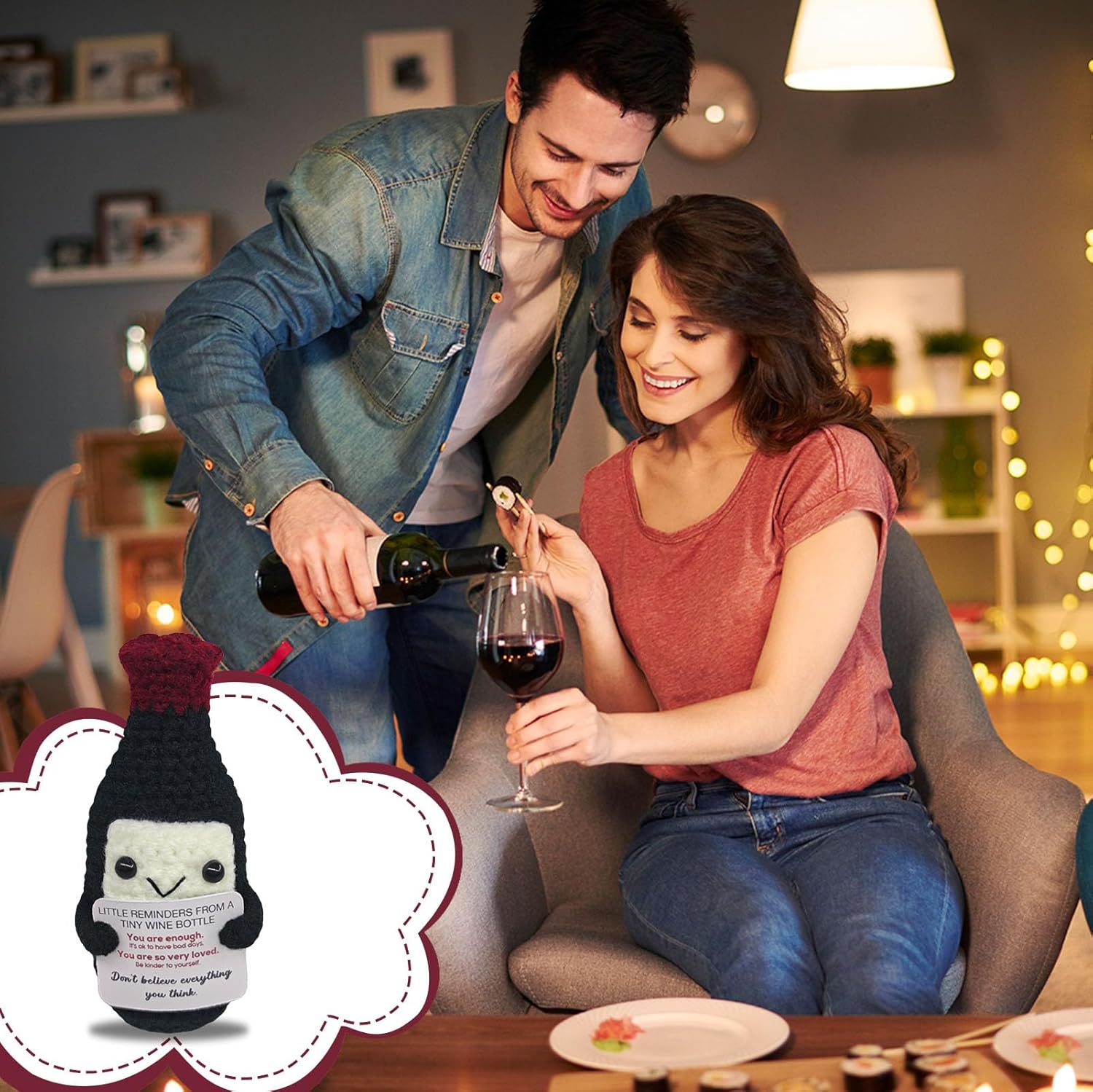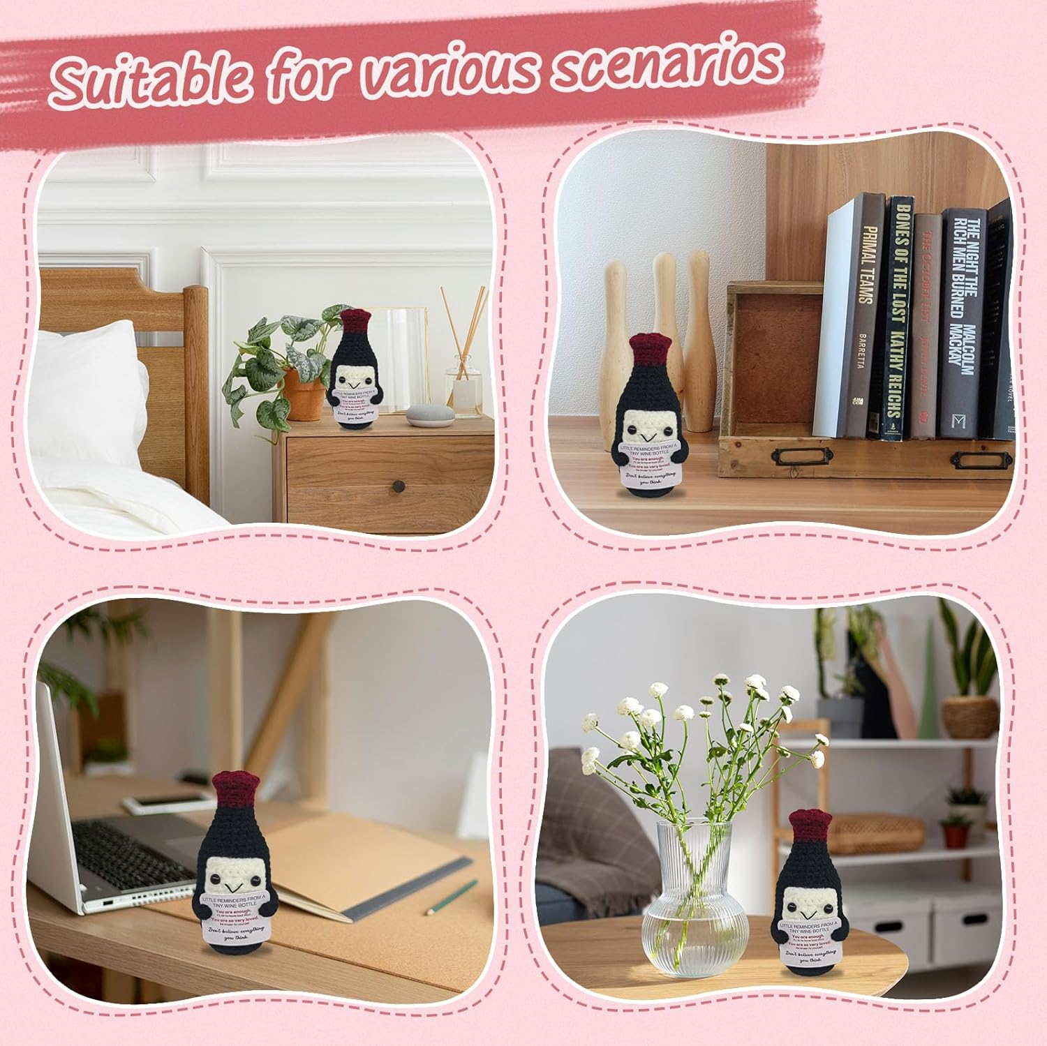 Handmade Mini Wine Crochet,Birthday Gift for Wine Lovers,Funny Emotional Support Crochet Vintage,Home Bar Happy Hour Accessories for Men Women Drinkers,Housewarming Gifts Fashion Decoration
