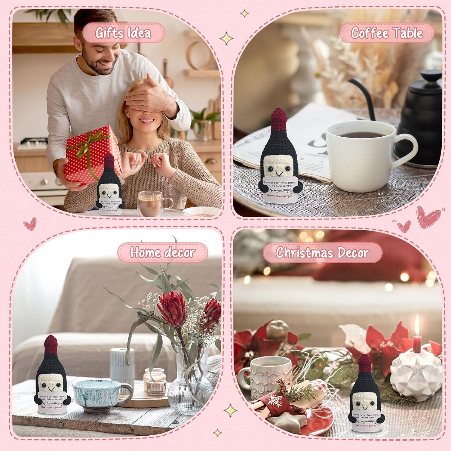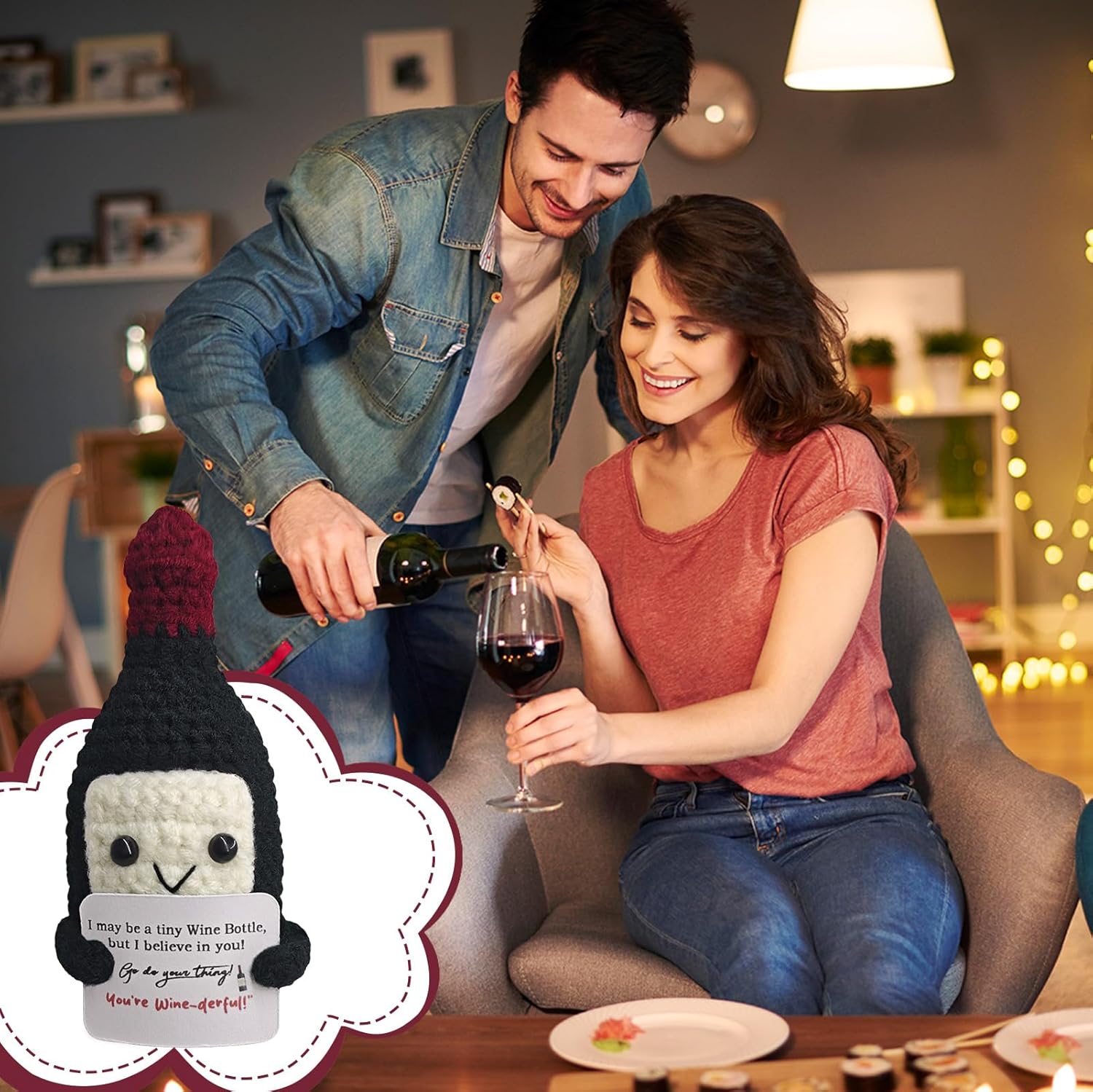 Funny Crochet Mini Wine Gift,Birthday Gift for Wine Lovers,Emotional Support Crochet,Cute Handmade Positive Crochets,Home Bar Happy Hour Accessories for Men Women Drinkers,Housewarming Gifts