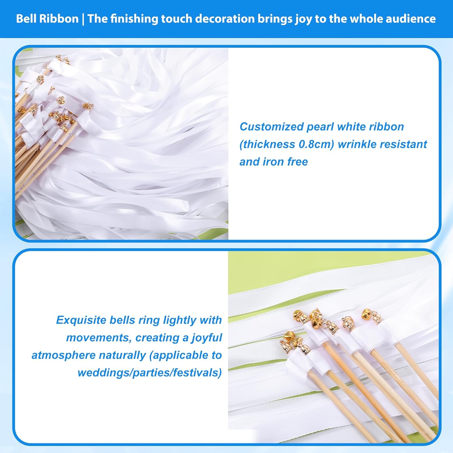 - 【Complete Set】This package includes 100 white ribbon wedding wand with bells, providing ample quantity for large gatherings. The comprehensive set allows for easy distribution among guests, ensuring everyone can join in the celebration.
