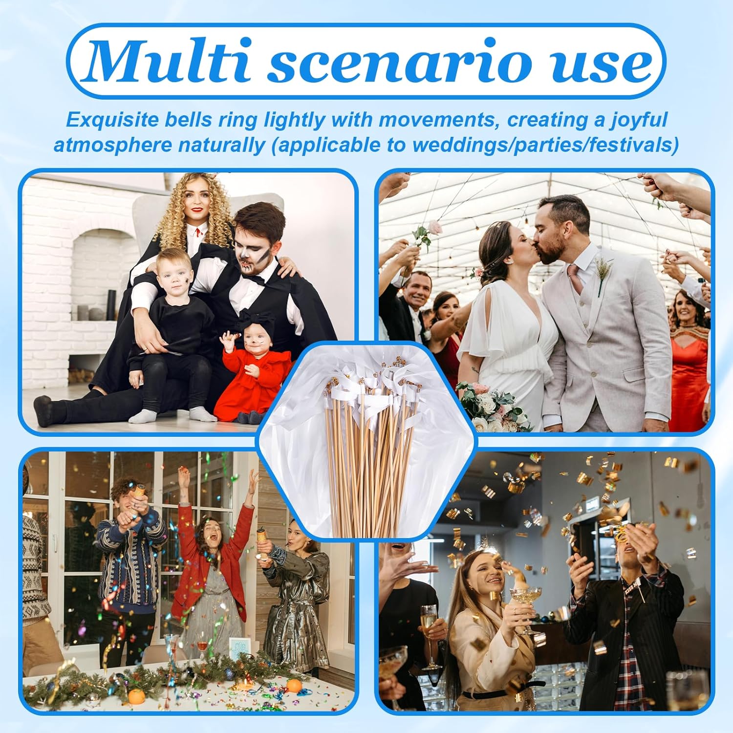 - 【Elegant Design】Our wedding wands feature a charming bell atop each stick, creating a delightful sound when waved. The combination of lace and silk ribbons adds a touch of elegance, making them perfect for weddings, parties, and celebrations.