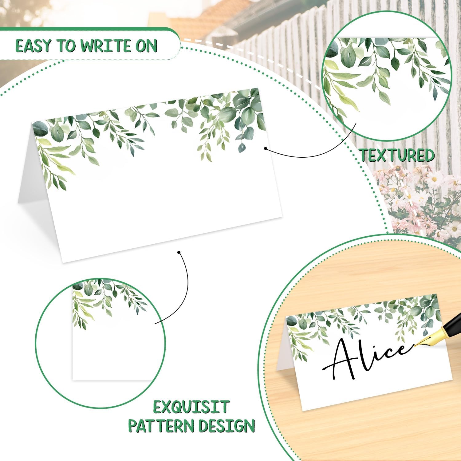 25 Pcs Greenery Place Cards, Watercolor Blank Tent Name Cards for Food Buffet, Dinner Party, Wedding Reception, Bridal Shower Table Setting -07