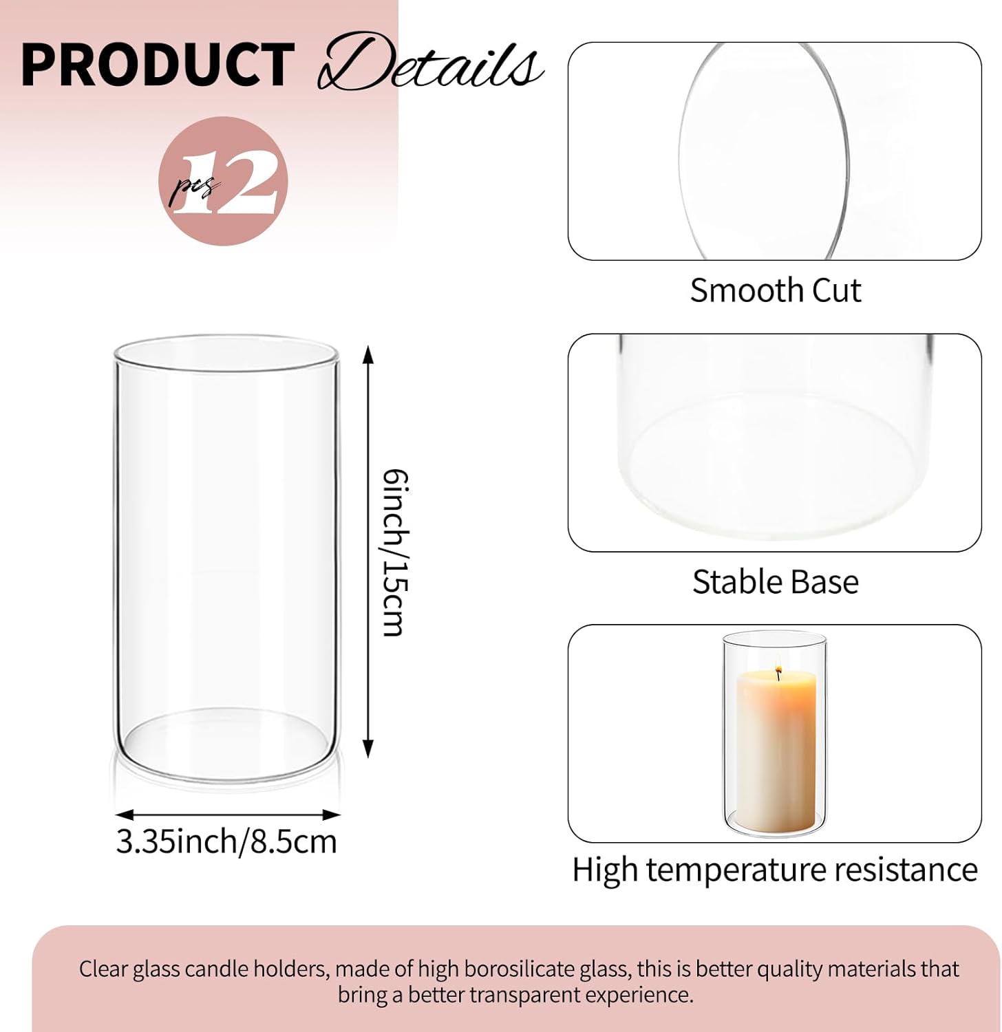 - ✅ Premium High-borosilicate Glass: Crafted from food-grade, heat-resistant borosilicate glass, our vases for centerpieces ensures exceptional clarity and durability. Designed with a solid base and smooth, polished rim, this flower vase provides stability and safety during use. This sturdy material can withstand greater temperature changes than regular glass. Perfect for use as a hurricane floating candle holder or for pillar candle holder.