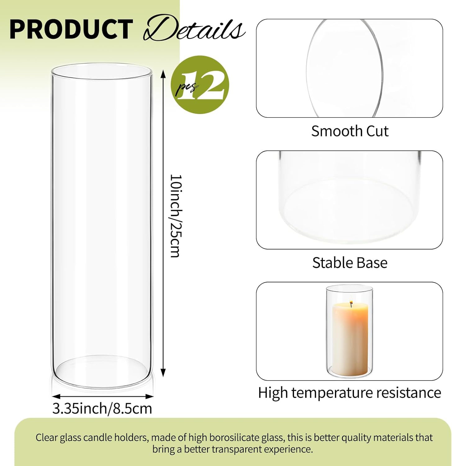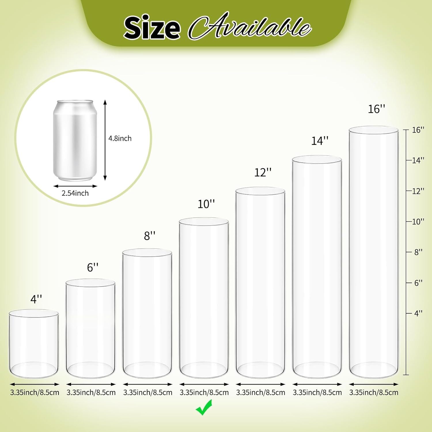 - ✅ Classic Cylinder Vase: This vase set contains 12 pack clear cylinder vases, the height is about 10 inch and the diameter is about 3.35 inch. Our glass vases are available in sizes from 3.35*4" to 3.35*16", ideal for various flower vases, vases for centerpieces, and candle holders. Its versatile uses makes it perfect for creating elegant centerpiece table decorations.