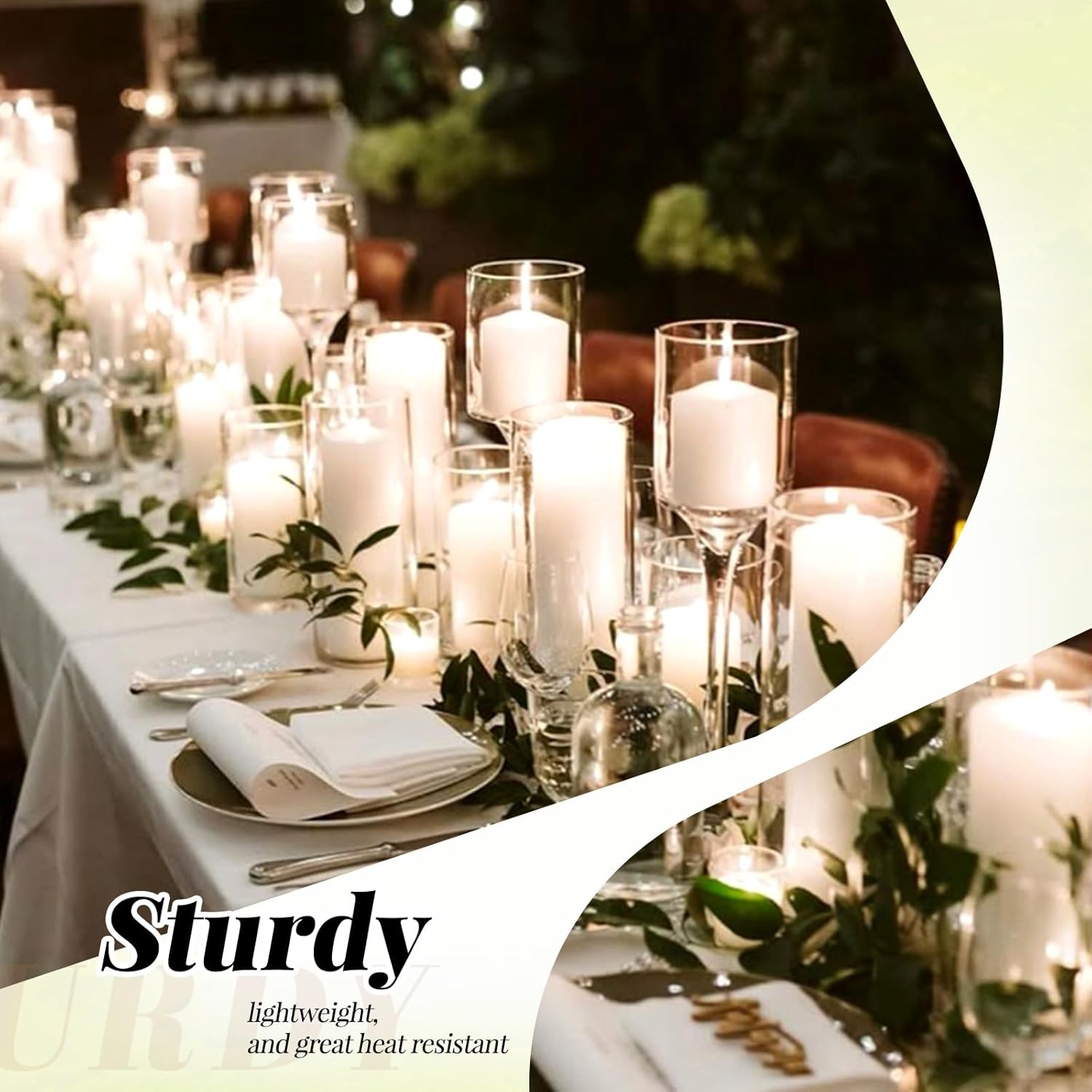 - ✅ Premium High-borosilicate Glass: Crafted from food-grade, heat-resistant borosilicate glass, our vases for centerpieces ensures exceptional clarity and durability. Designed with a solid base and smooth, polished rim, this flower vase provides stability and safety during use. This sturdy material can withstand greater temperature changes than regular glass. Perfect for use as a hurricane floating candle holder or for pillar candle holder.
