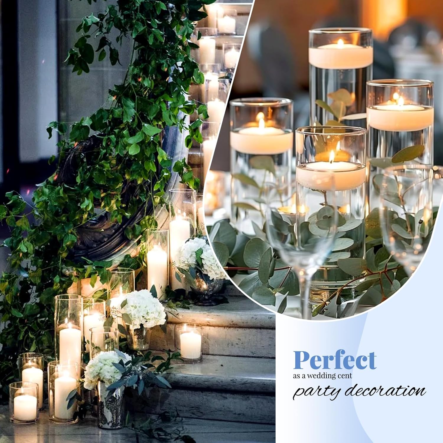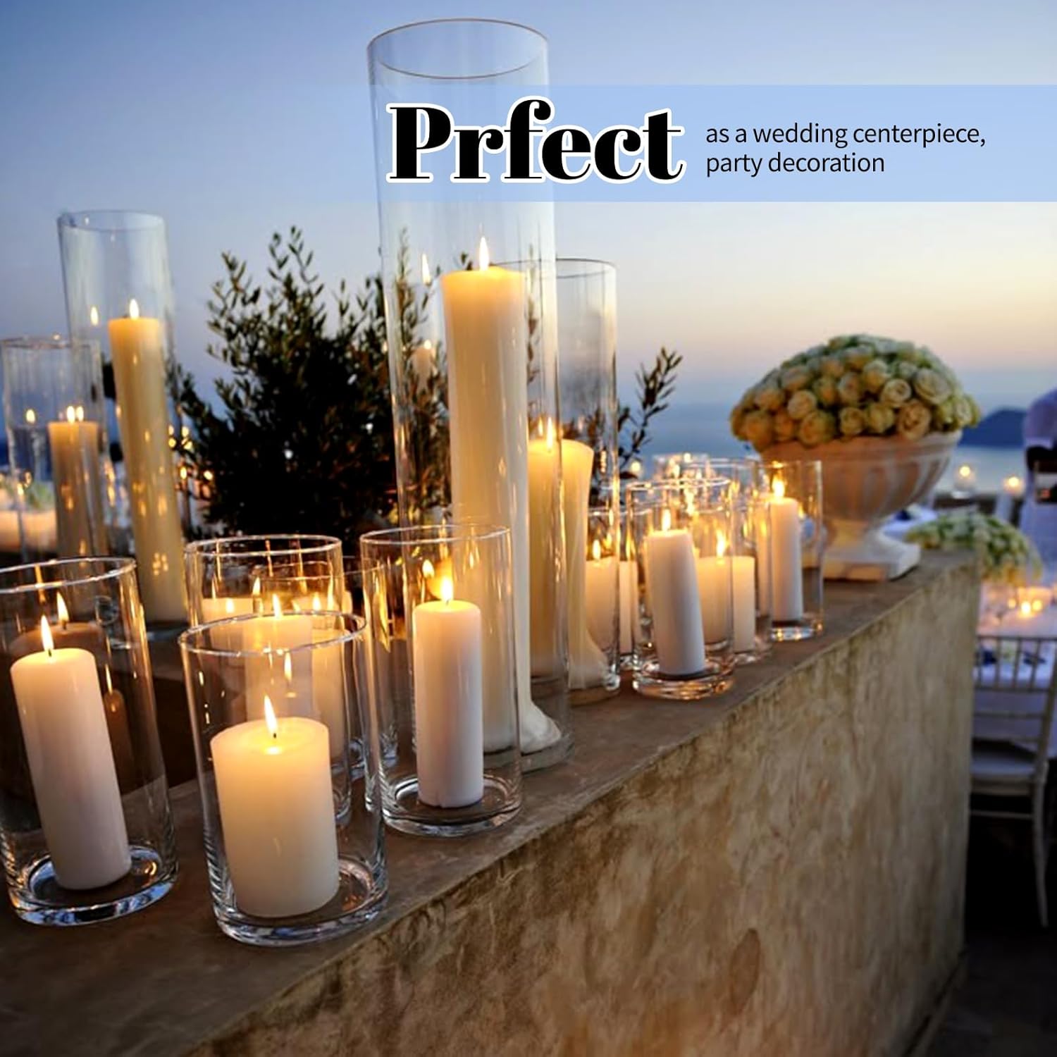 - ✅ Premium High-borosilicate Glass: Crafted from food-grade, heat-resistant borosilicate glass, our vases for centerpieces ensures exceptional clarity and durability. Designed with a solid base and smooth, polished rim, this flower vase provides stability and safety during use. This sturdy material can withstand greater temperature changes than regular glass. Perfect for use as a hurricane floating candle holder or for pillar candle holder.