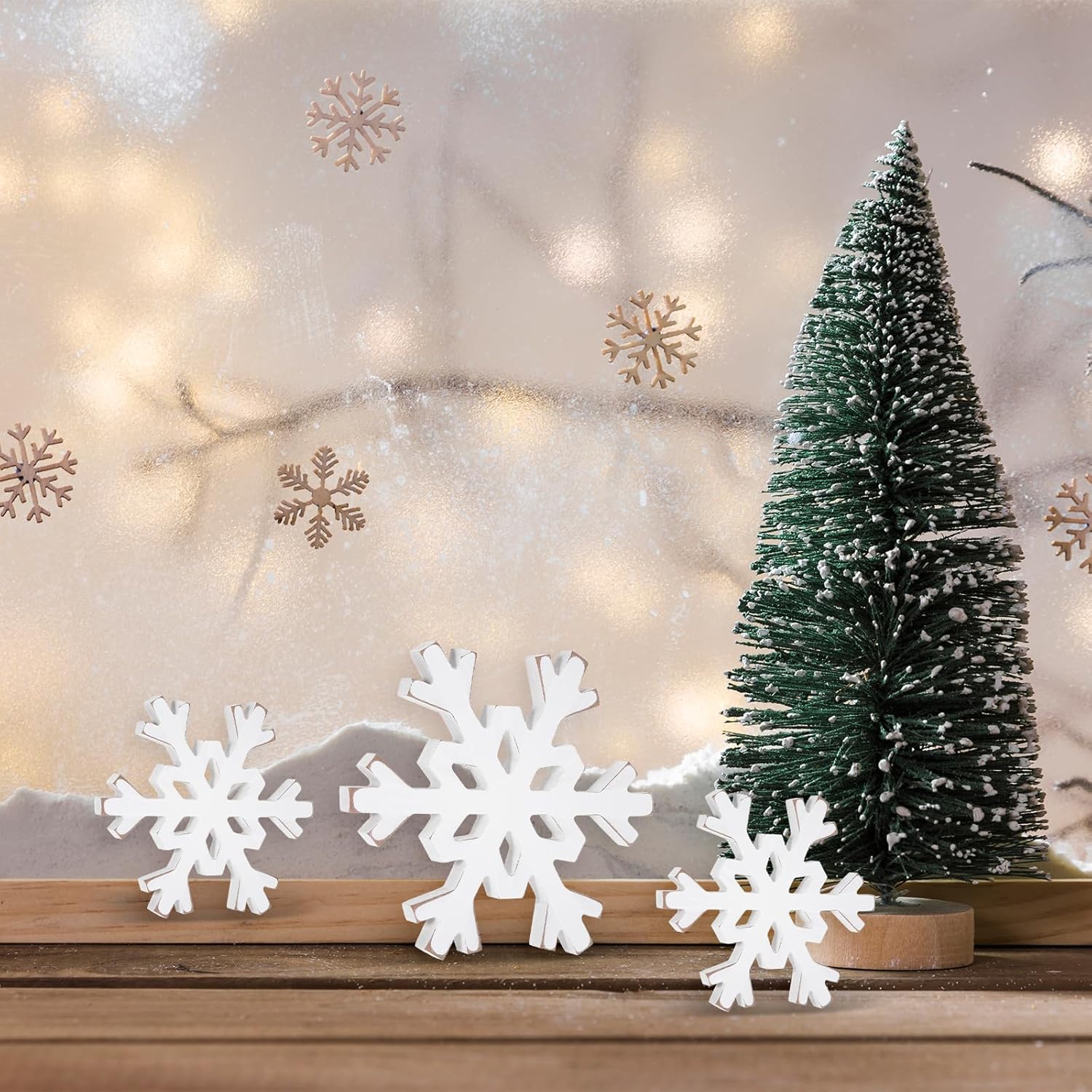 - Versatile Decor Options: Place them on mantle, shelf, coffee table, or fireplace—they work as Christmas mantel decor, Christmas shelf decor, or table top Christmas decor. Suitable for home, office, or party use, matching other Christmas snowflake decor effortlessly.