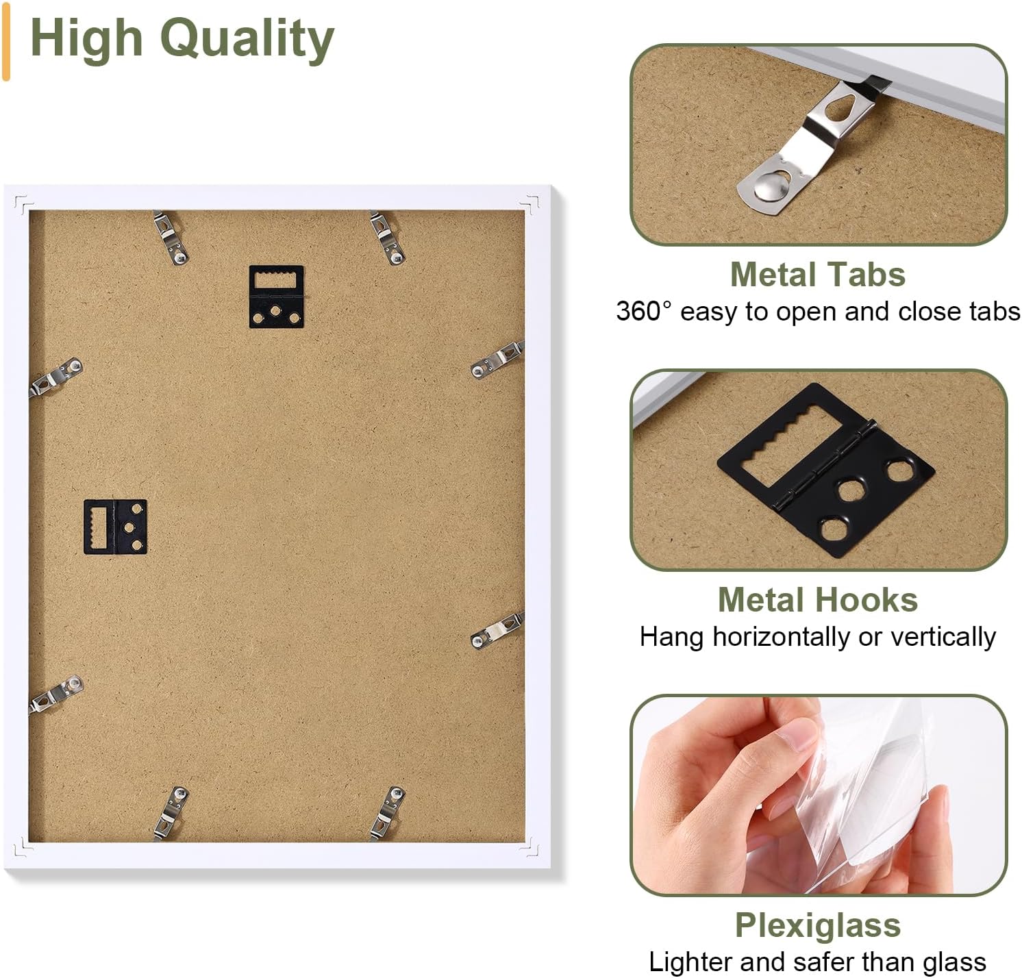 - Ease of Use: The collage frame features a quick-release back panel with flexible tabs for effortless photo switchs in seconds. Pre-installed hooks allow instant wall mounting horizontally or vertically