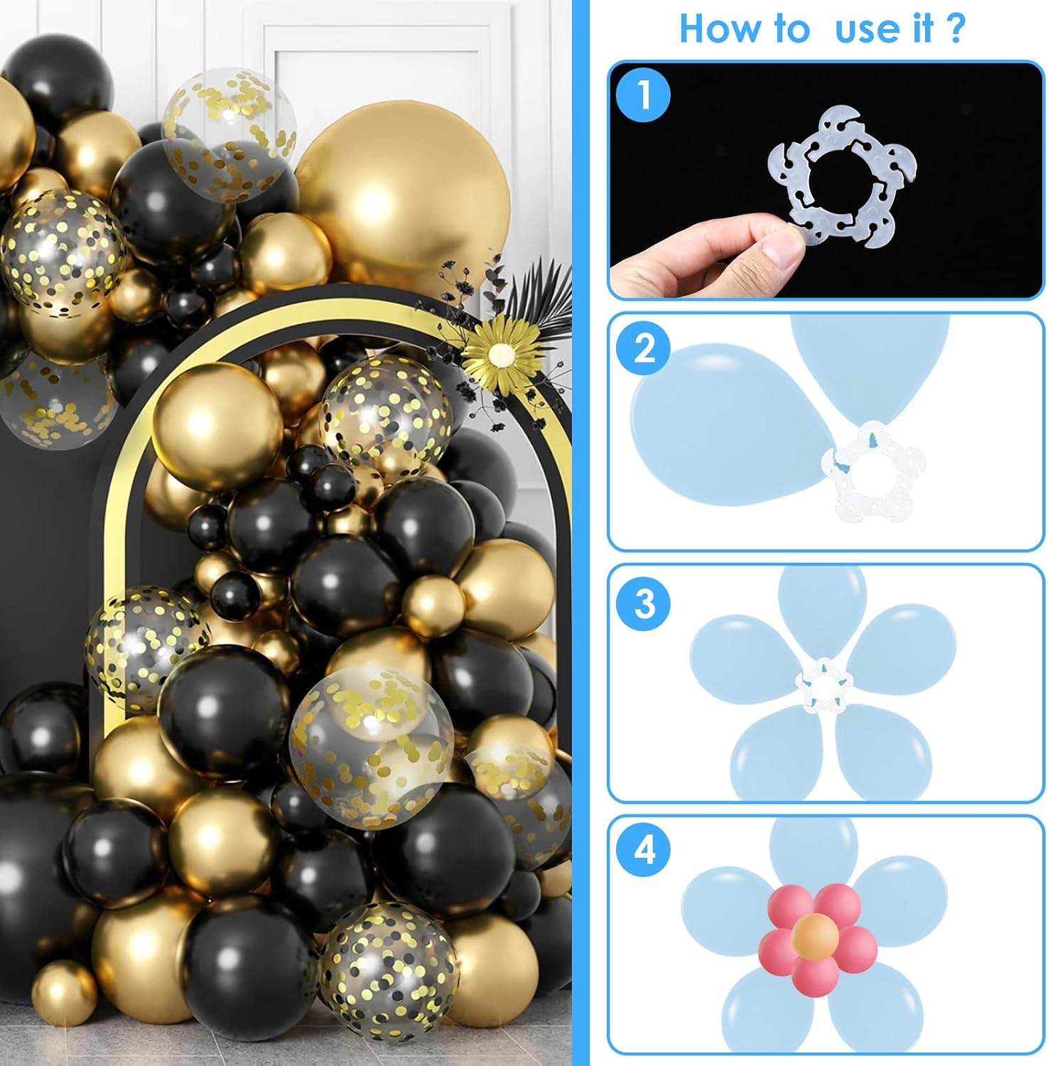 - Easy to Assemble and Use: This easy-to-assemble balloon connector allows you to quickly tie balloons together to make balloon flowers. Each clip can hold up to five balloons. Several balloon flowers can be arranged to form a beautiful arch.