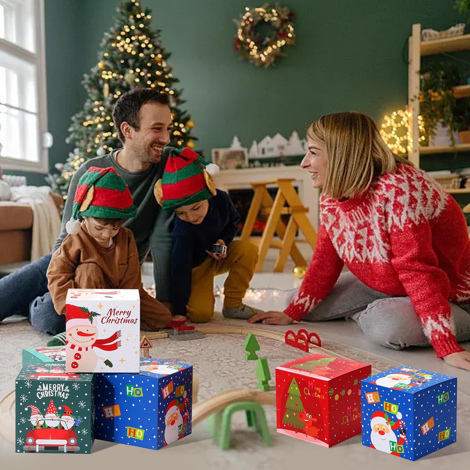 - 5 Classic Designs: Includes 20 individually wrapped holiday gift boxes featuring 5 festive designs - Christmas Tree, Santa Claus, Reindeer, Snowman, and Christmas Car (4 pieces per design). Perfect for parties, gift-giving, or family sharing, these delightful Christmas gift box will sweeten your Christmas celebrations!