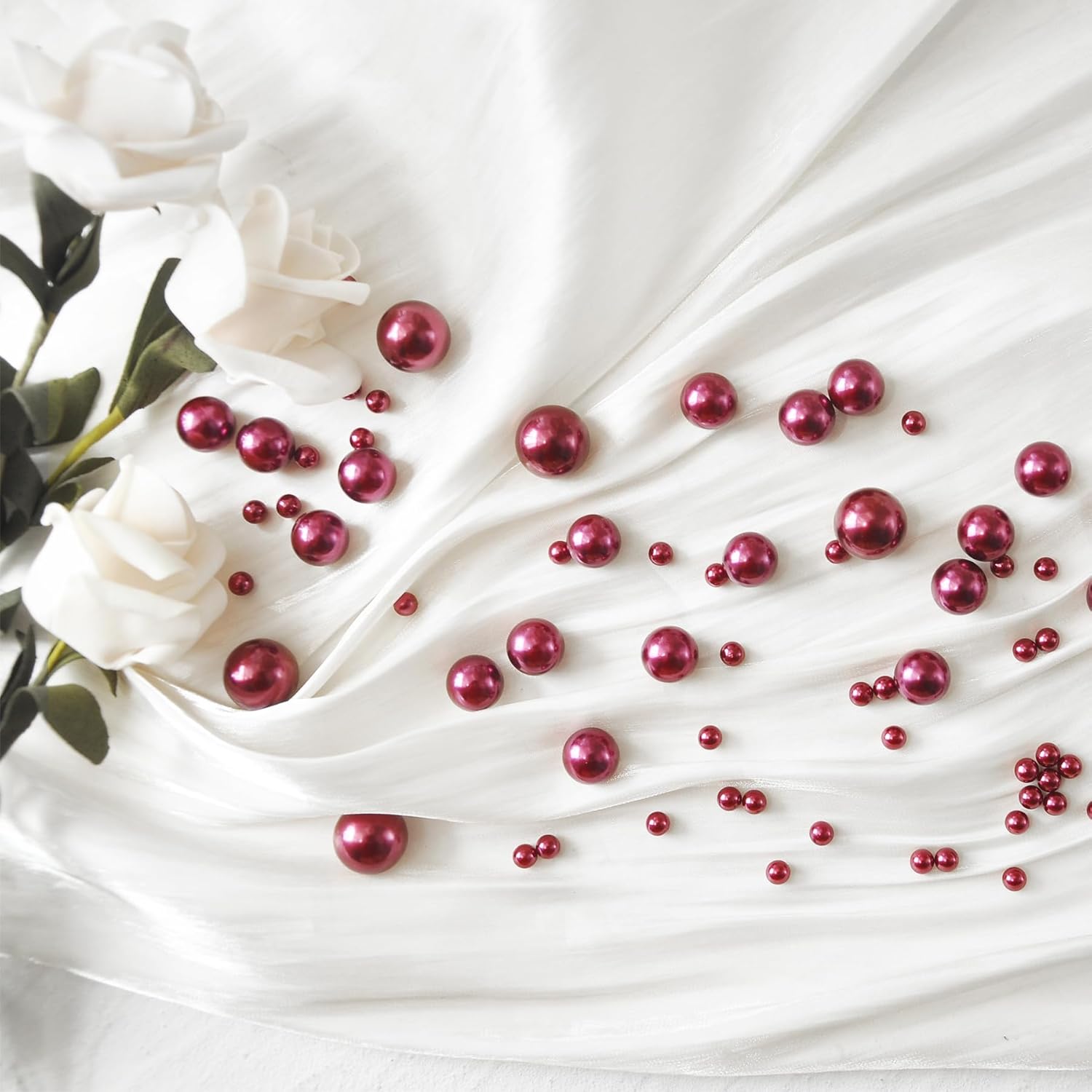 520Pcs WineRed Beads for Centerpieces Decor, Artifical Pearls Vase Filler, Large Beads for Makeup Brush, No Hole Round Pearl Beads for Wedding Birthday Christmas Party Home Decor(18mm 14mm 6mm)