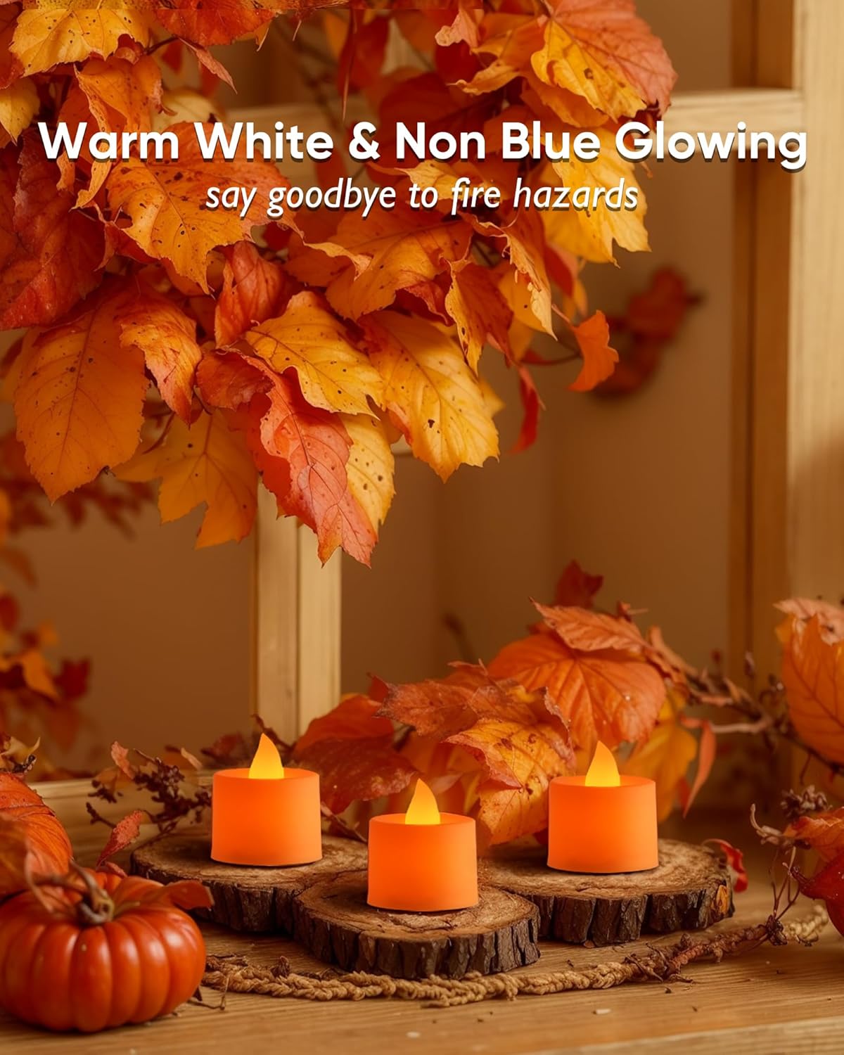 Amagic 24 Pack Halloween Orange LED Tea Lights, Flameless Votive Candles Battery Operated, Electric Fake Colored Tealights Candles for Party, Christmas, Thanksgiving, Table Centerpiece, Holiday Decor