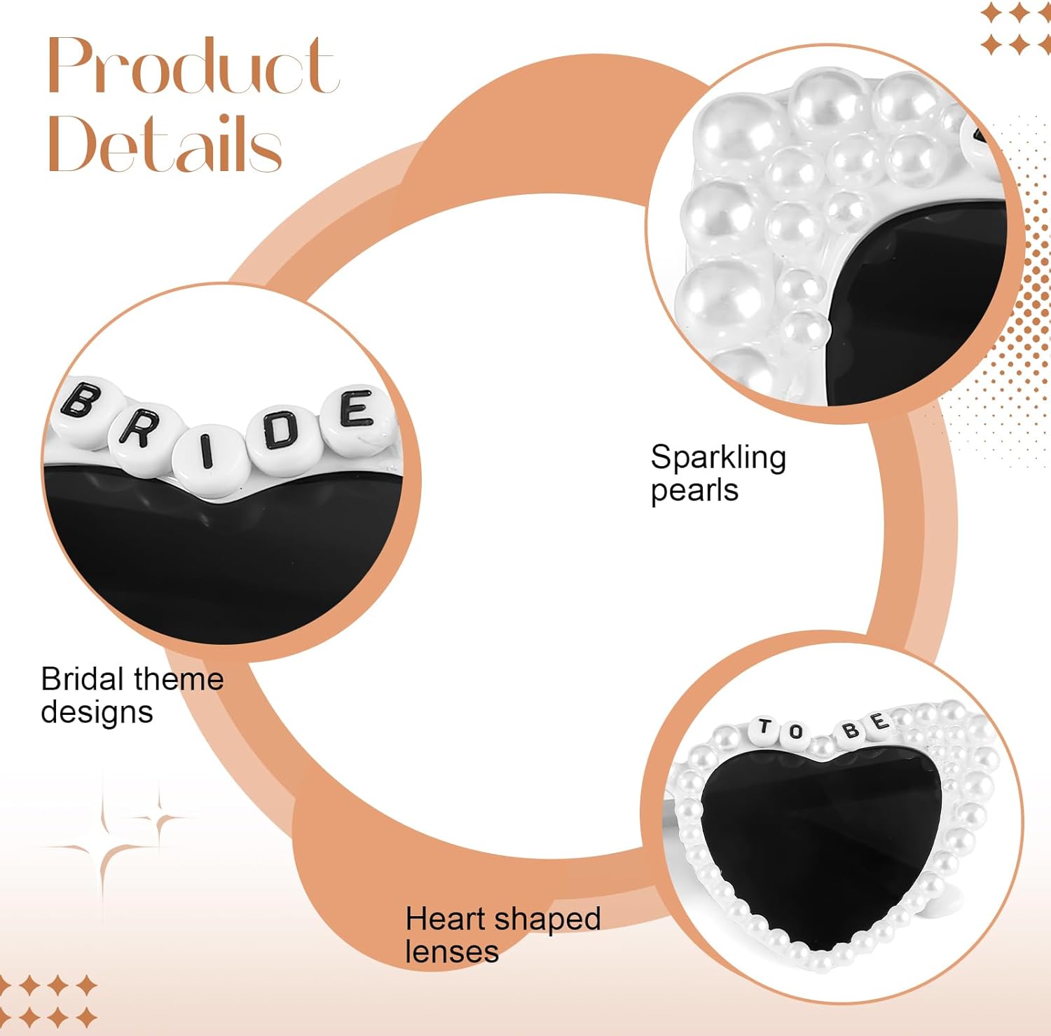 - 2 Piece Bride Set :Includes one white "Bride to Be" satin sash and one pair of pearl heart-shaped sunglasses, perfect for any pre-wedding occasion.