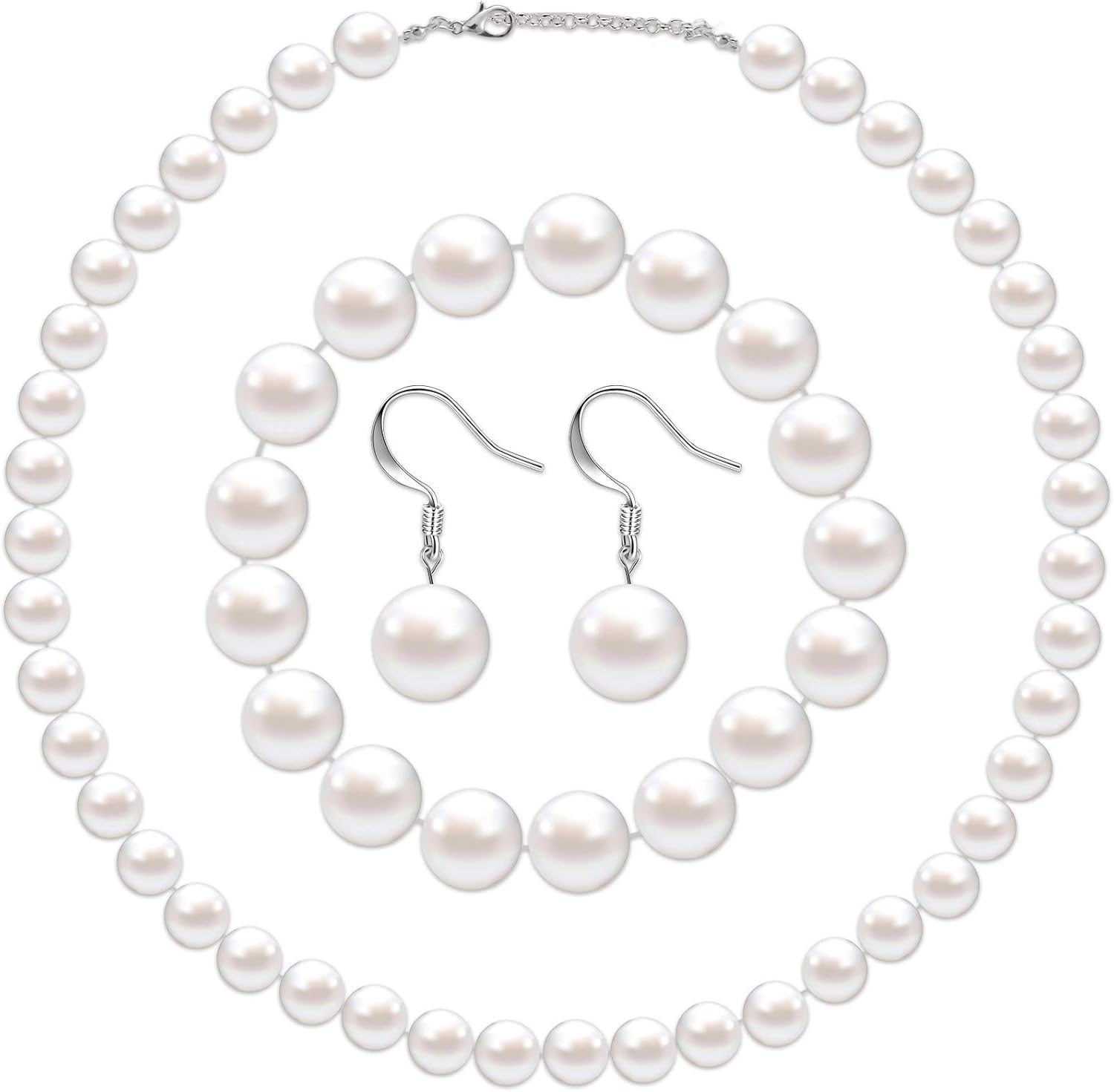 - Faux Pearl Jewelry Set: the faux pearl jewelry set includes 1 pearl necklace, 1 elastic beaded bracelet and 1 pair of pearl earrings, the necklace measures approximately 18 inches, the bracelet is 7.9 inches long, a set of matching pearl jewelry is worthy of your favor