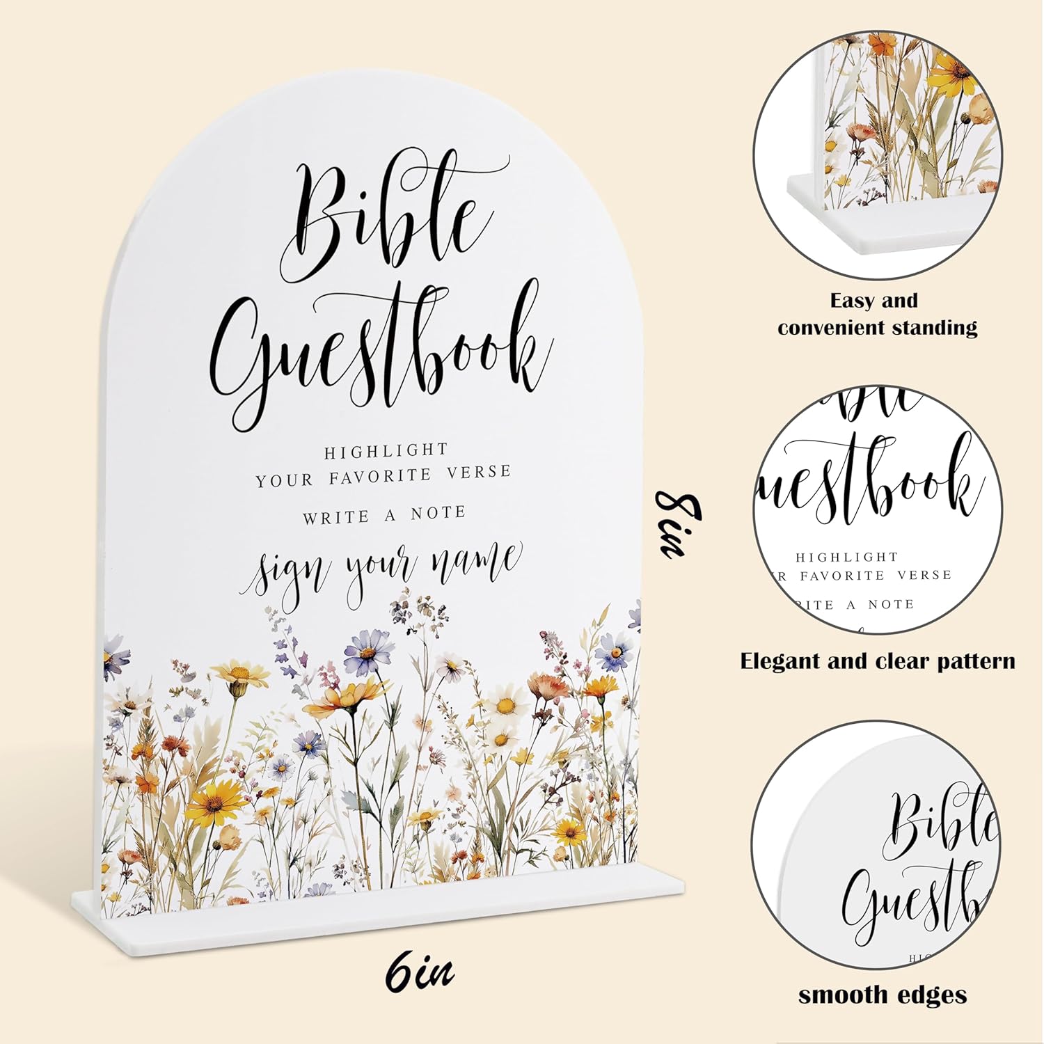 Wedding Signs for Ceremony and Reception, Boho Floral Acrylic Bible Guestbook Sign, Wedding Signage with Stand, Bridal Shower Table Centerpieces, Supplies for Engagement Reception Event Party, 36