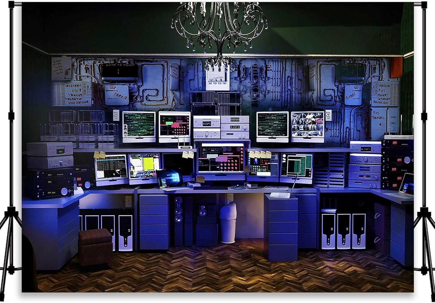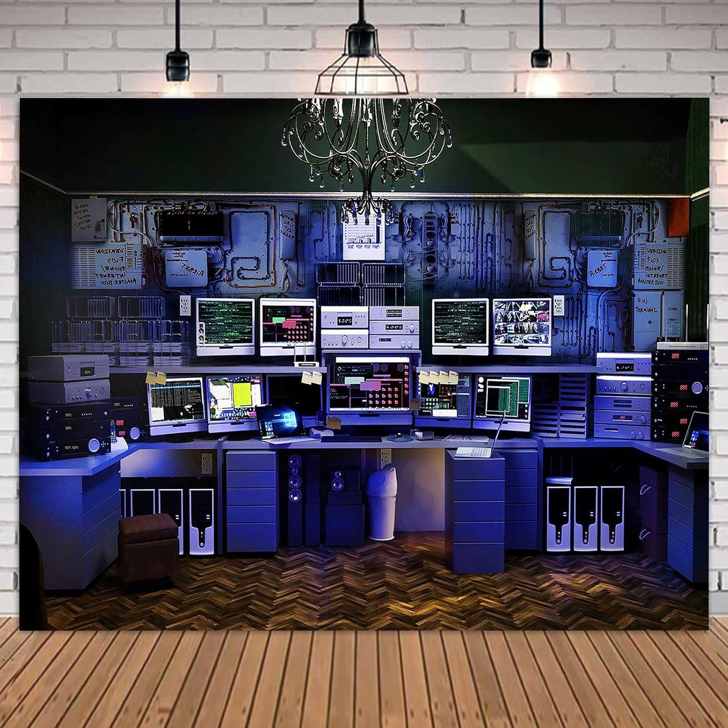 Computer Photo Backdrop Technology Office Backdrop Vintage Blue Background for Boys Party Room Decor Photo Booth Props Supplies YUNBYW010