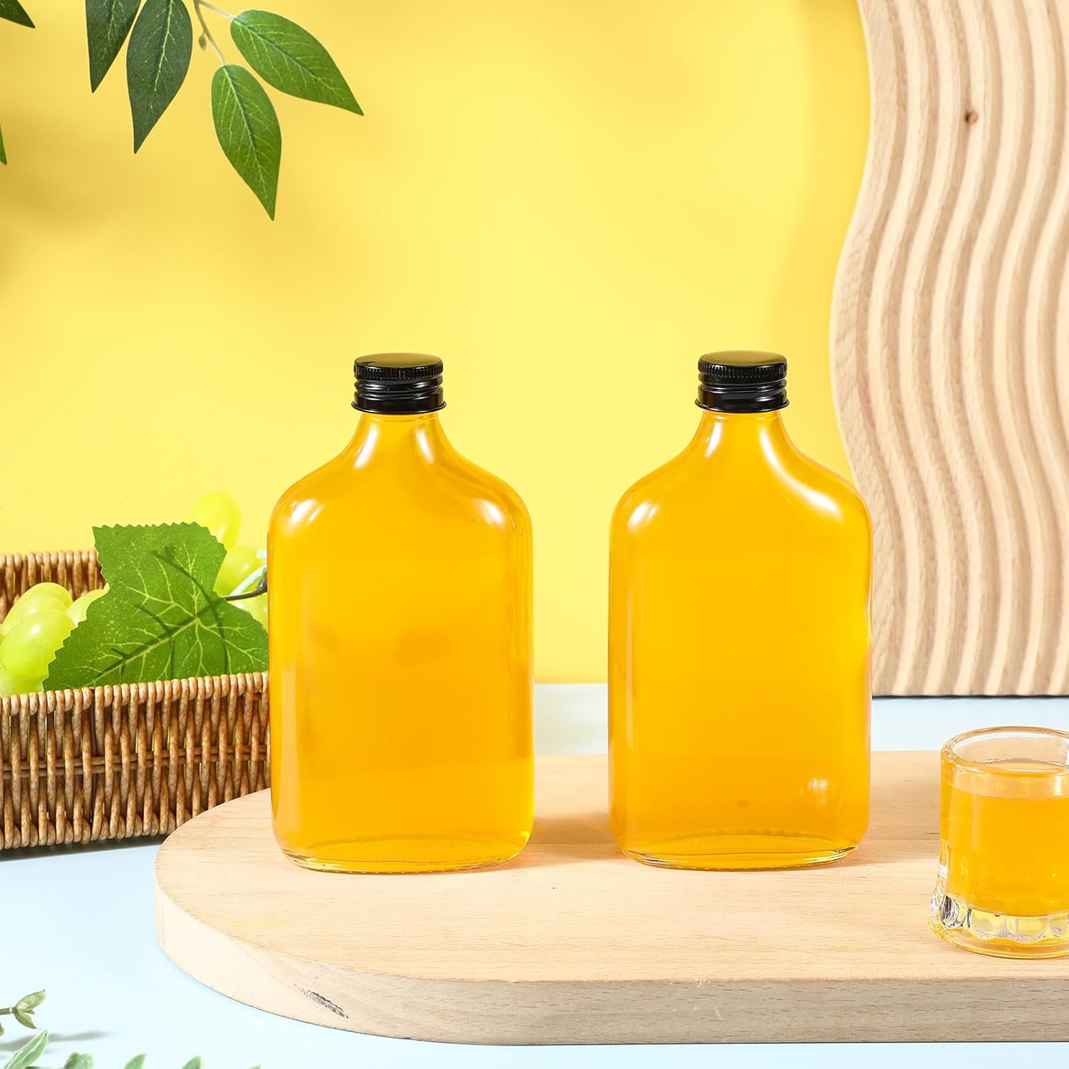 - Multi Purposes: our small glass flask bottles have a small capacity, not only suitable for liquor, hot sauce, beer, whiskey, wine, champagne, maple syrup, and vanilla, also suitable for you to dispense juice, essential oil, etc., can be helpful in kitchen, bar, travel, camping, restaurant, BBQ and more