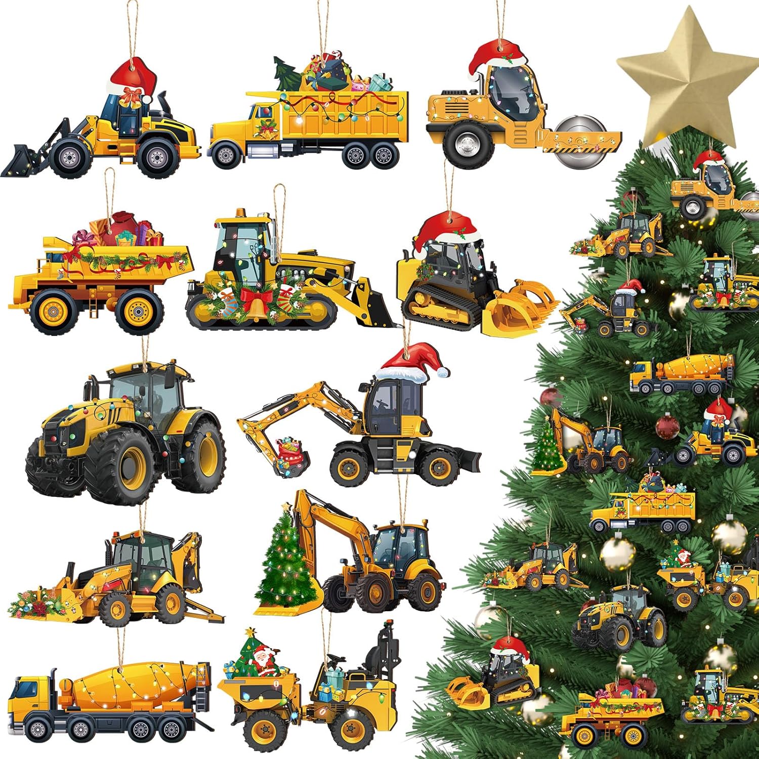 - Warm and festive design: exquisite details and production, construction truck ornaments featuring different construction truck designs, including forklifts with Christmas trees, excavators with Christmas hats, trucks with Christmas gifts, etc.; Their classic and fun style makes these decorations a delightful addition to your holiday decor
