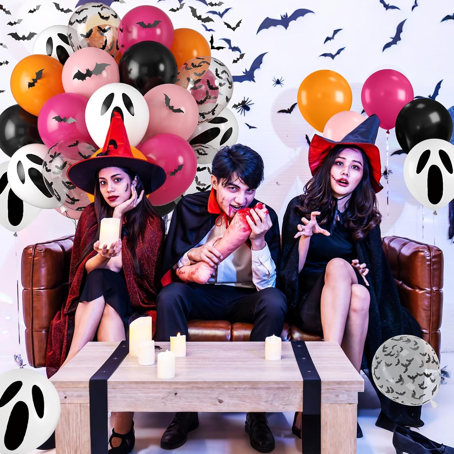- 35 Pcs Halloween Balloon Set: Bring spooky fun to your Halloween celebration with this vibrant Halloween balloons set, including 7* hot pink balloons, 7* orange balloons, 6* pastel pink balloons, 6* black balloons, 4* bat-print balloons, 4* ghost-print balloons, 1*10m ribbon, and 1 set of 3D Halloween bats stickers. These Halloween balloons create a fun, spooky backdrop for parties, trick-or-treating, and photos.