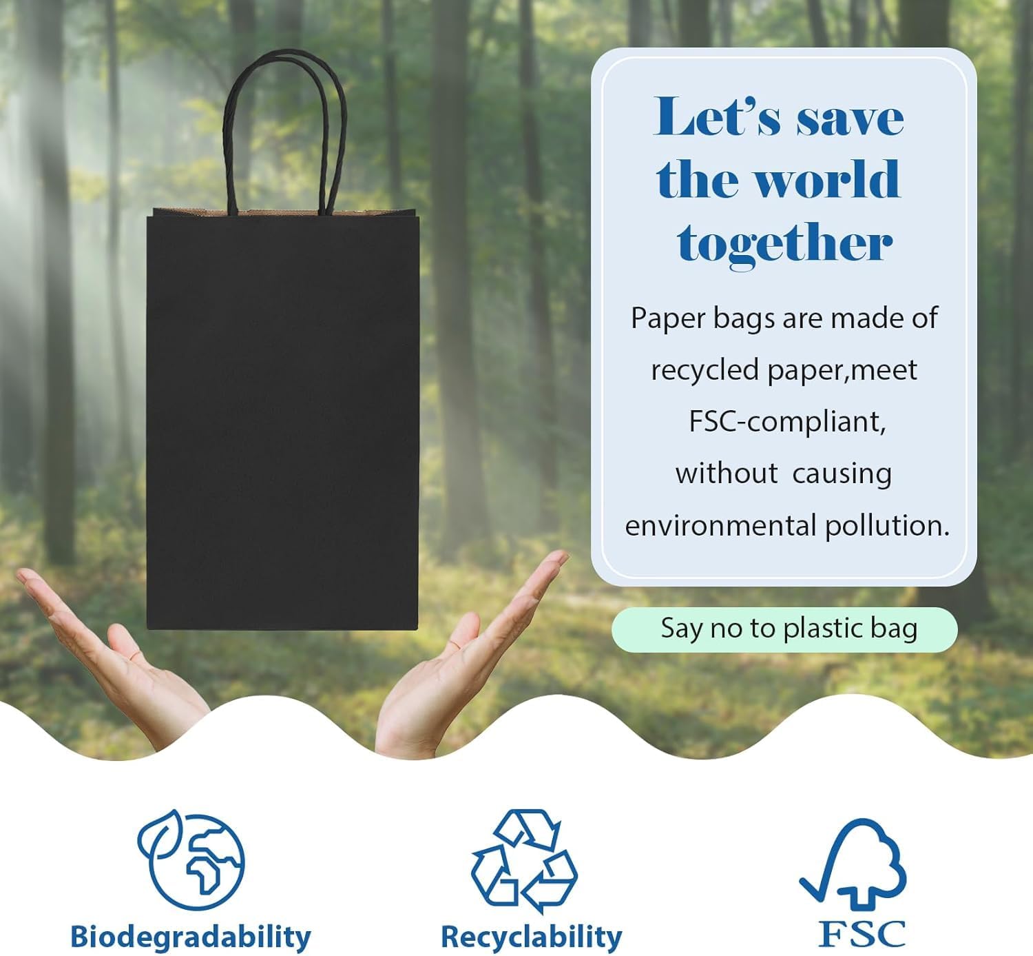 - Sustainable FSC-Certified Packaging: Kraft bags with handles bulk made from FSC-compliant recycled paper. Black gift bags with handles are biodegradable, recyclable and compostable. Reduces waste while meeting retail packaging standards for eco-minded buyers
