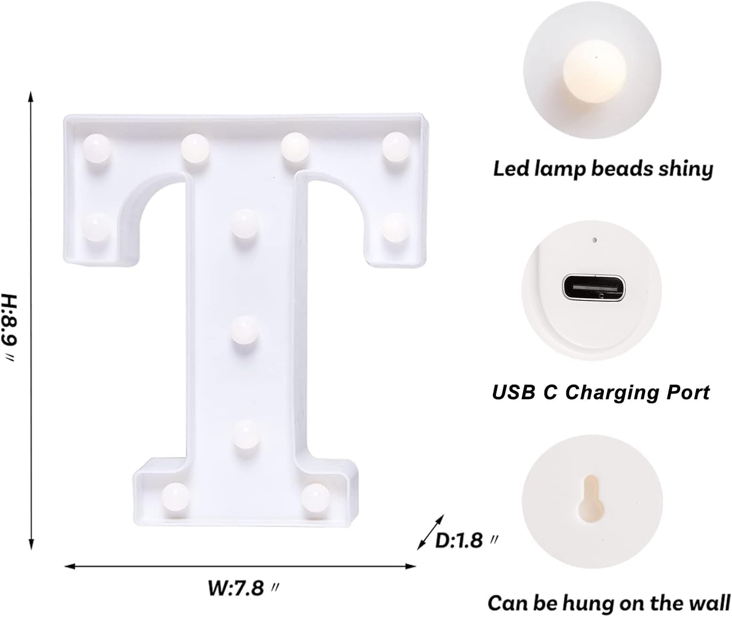 Foaky Rechargeable LED Letter Lights Sign Marquee Light Up Letters Sign for Night Light Wedding/Birthday Party Christmas Lamp Home Bar Decoration (T)