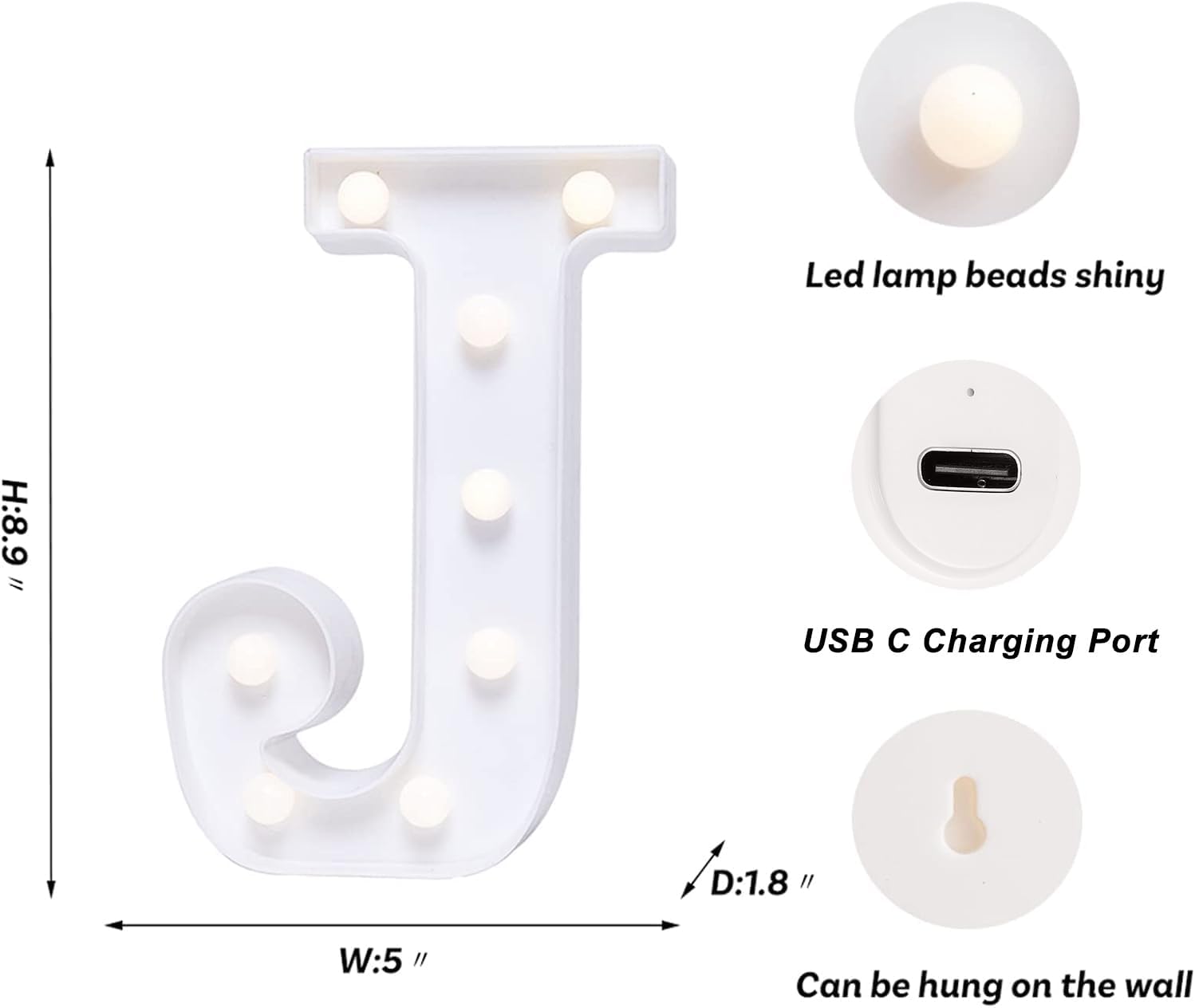 Foaky Rechargeable LED Letter Lights Sign Marquee Light Up Letters Sign for Night Light Wedding/Birthday Party Christmas Lamp Home Bar Decoration (J)