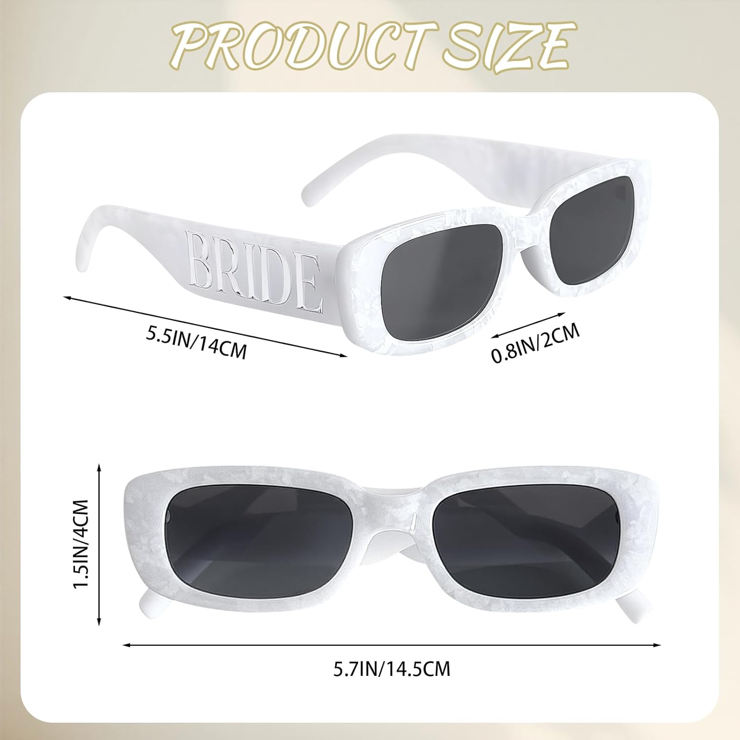 - Perfect for the Bride to Be! – These chic white marble sunglasses feature "Bride" engraved on the arms, making them a must-have accessory for Bachelorette Parties, Bridal Showers, and wedding celebrations