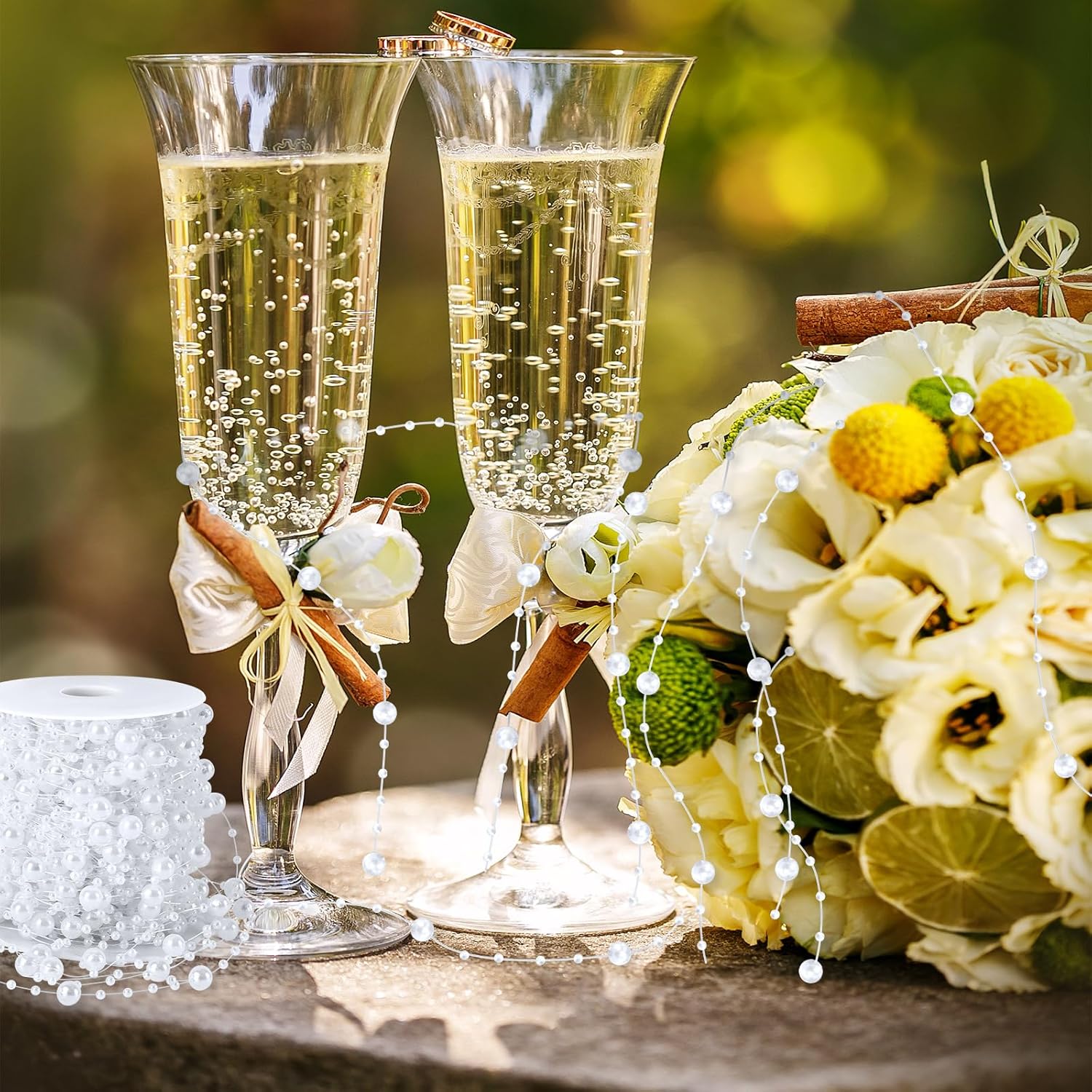 JULBEAR Beads Garland Decoration,1Rolls 131Feet White Christmas Pearl Strands Chain Bead Garland for Christmas Tree Fireplace Wreath Gift Bouquet Crafts Wrapping Wedding Party Centerpieces Decoration