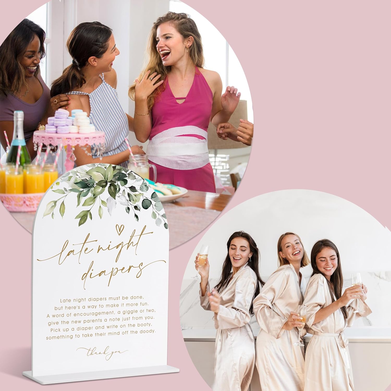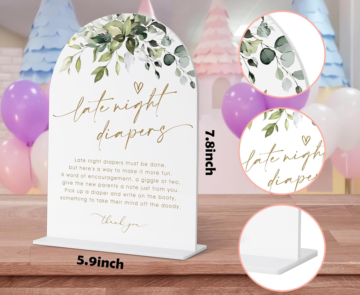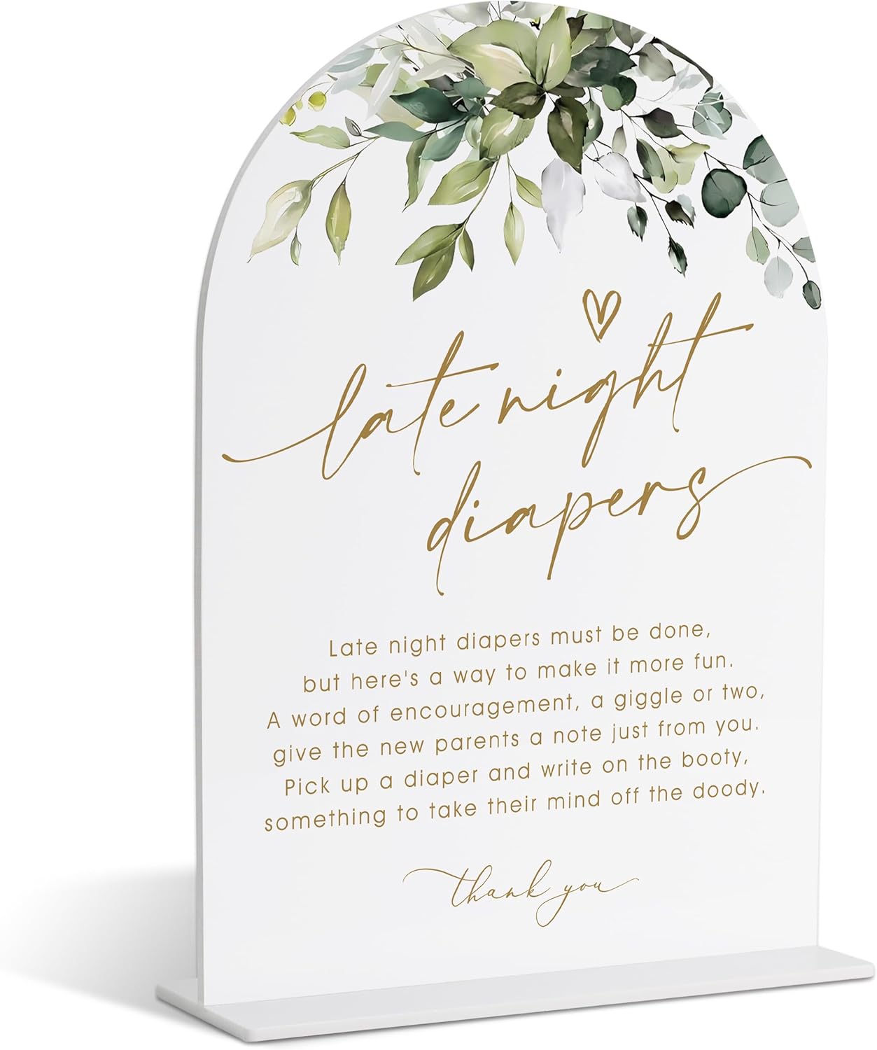 Late Night Diapers Sign, Greenery Gold Baby Shower Sign, Dirty Diaper Game, Neutral Baby Shower Decorations, Gender Reveal Table Acrylic Decorations, Table Centerpieces for Party Event - 22