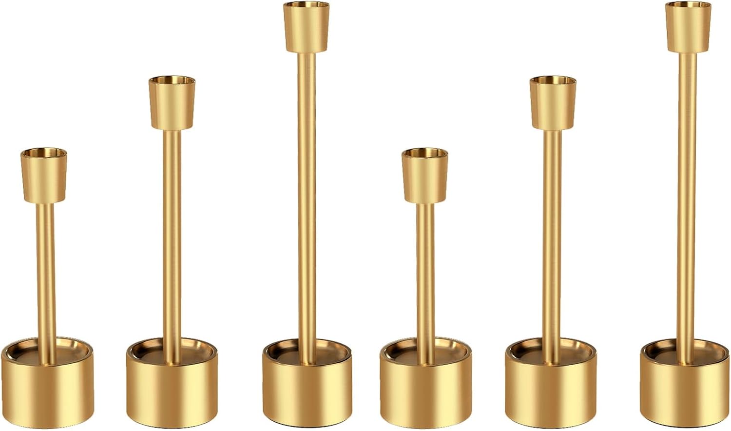 YUMORE 6 Packs Small Taper Candle Holders Candlestick Holder Stable Base Stand Holders for Dining Table Wedding Centerpiece (Gold)