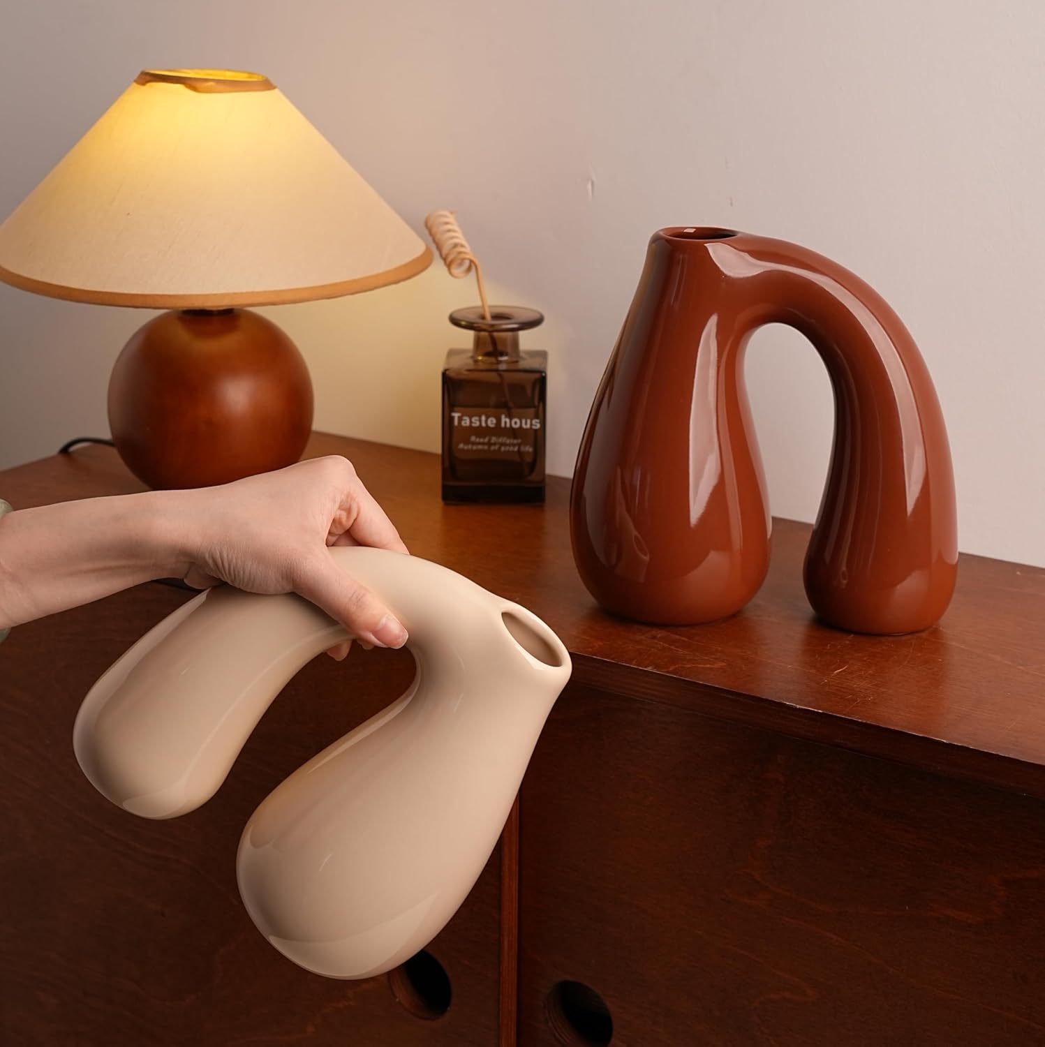 White (Ivory) Ceramic Vase – Glossy Modern Sculptural Décor, Arch Handle Artistic Design, Premium Minimalist Accent for Table, Shelf, or Entryway (7.5 in, Holds Water)
