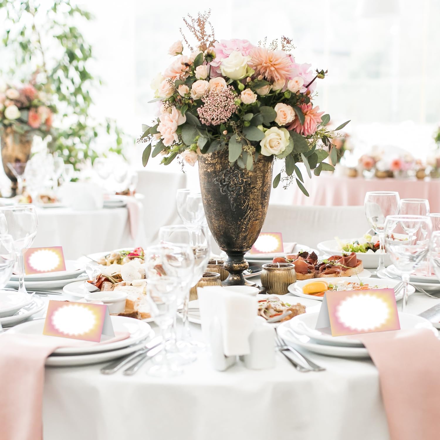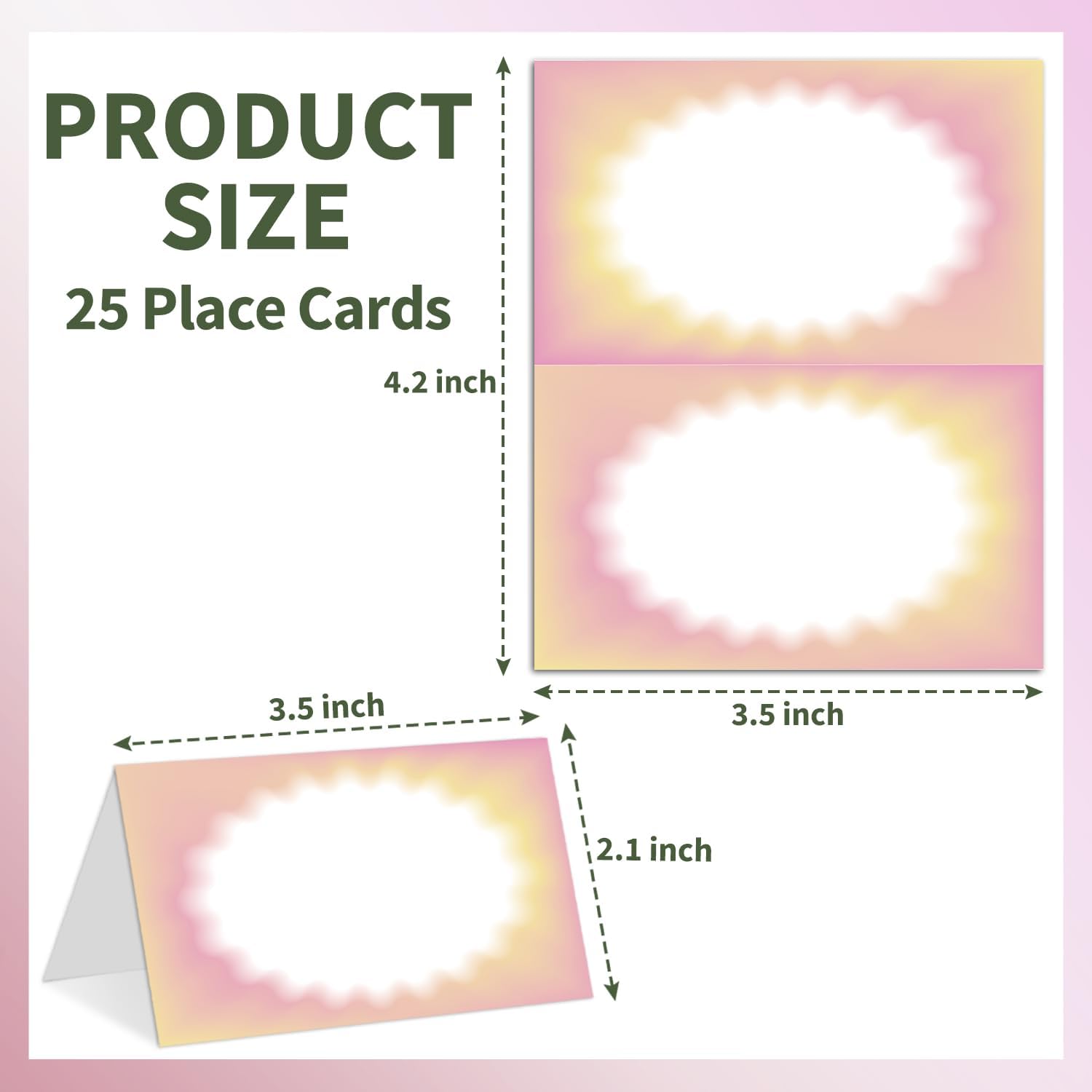 25 Color Gradient Place Cards for Table Seating, Pink Yellow Wedding Name Place Card, Tent Cards for Birthday Bridal Shower Baby Shower Reception Dinner Party Decorations -A04
