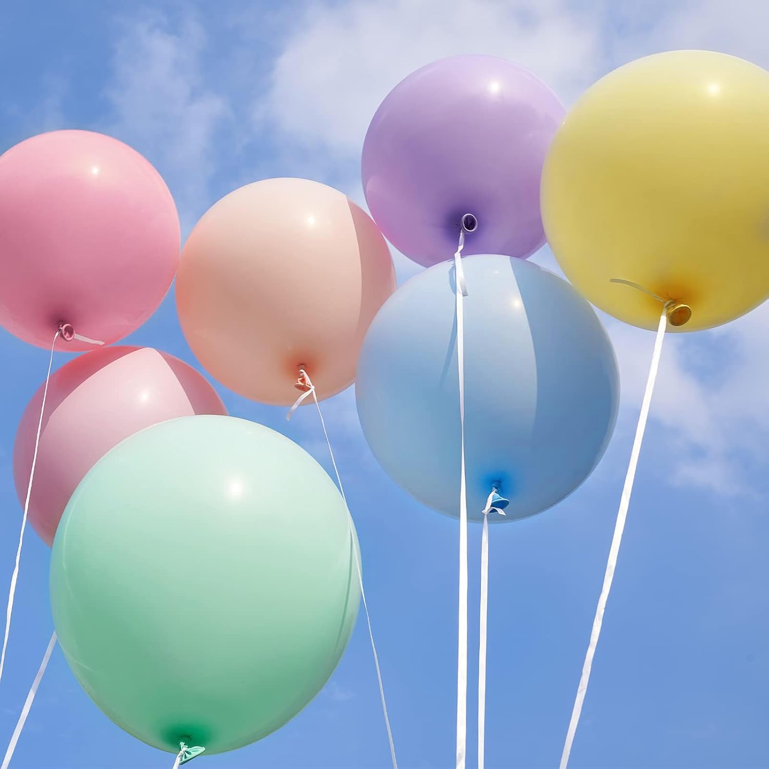 - What You Will Get - Our pastel balloons kit includes 10 pcs macaron pink balloons, 10 pcs macaron blue balloons, 10 pcs macaron purple balloons,10 pcs macaron green balloons, 10 pcs macaron yellow balloons, 10 pcs macaron orange balloons, 1 pink ribbon and 1 white ribbon