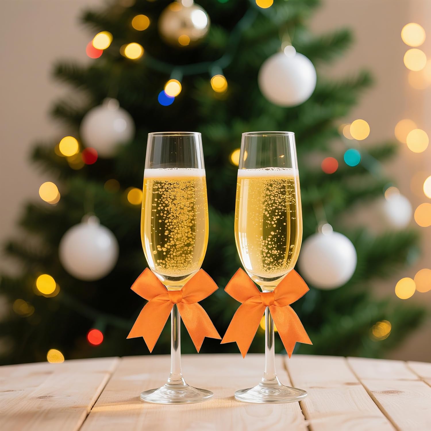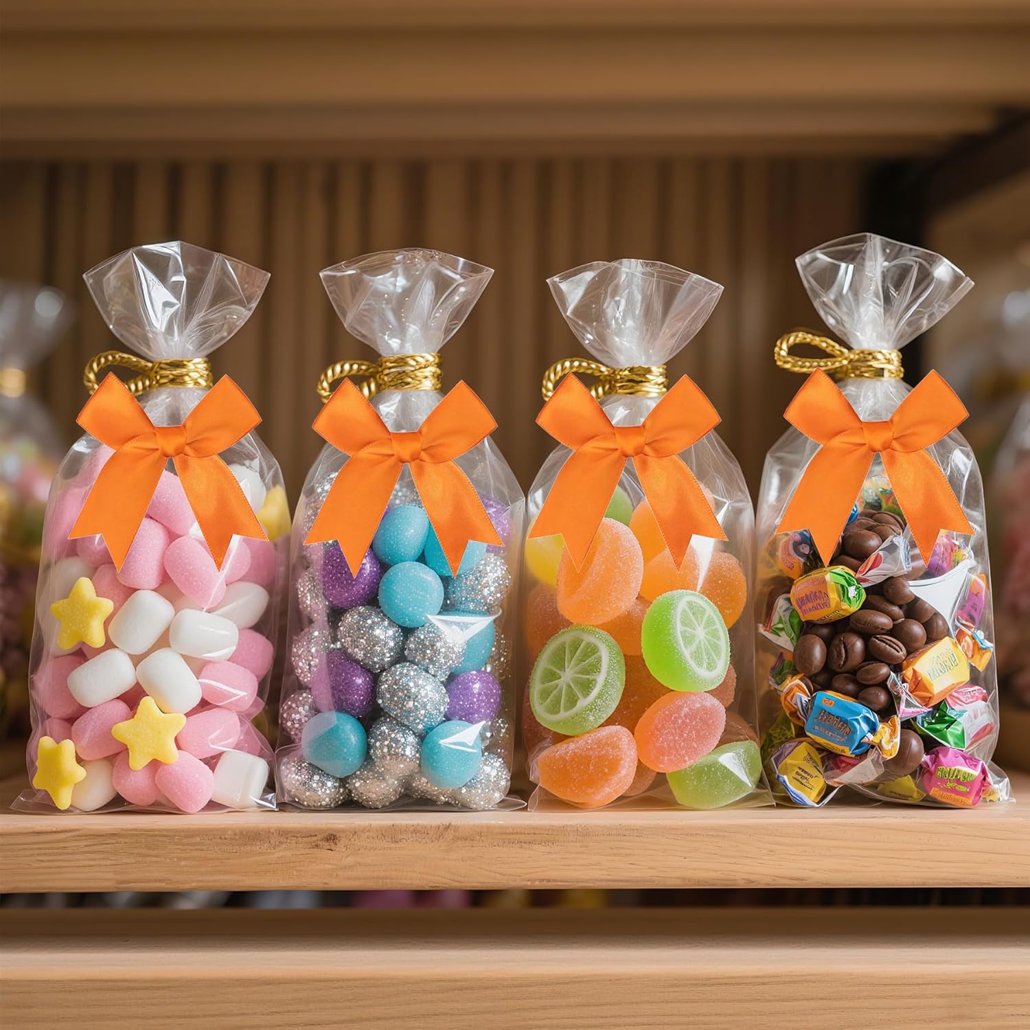 50 PCS Twist Tie Bows Satin Ribbon Bows 3.3 Inch Gift Wrap Bows Craft Bows for Gift Wrapping, Party Decorations Gifts Bag DIY Treat Bags Wedding Decor Baby Shower Christmas (Orange)