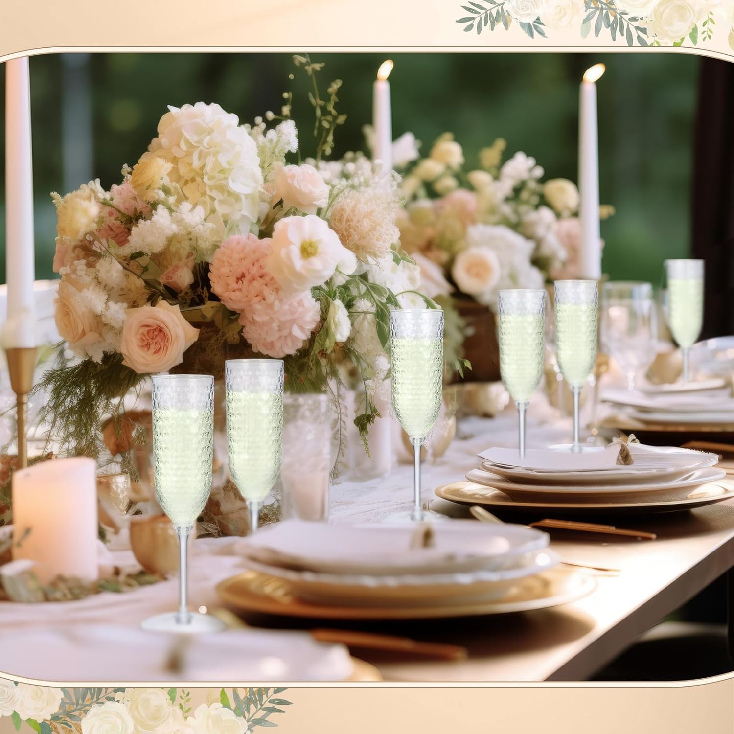 - Quality, Lightweight & Portable: Crafted from plastic, these disposable champagne glasses combine durability with featherlight convenience; Say goodbye to broken glass—these reusable champagne flutes are ideal for outdoor parties, poolside sipping, or large-scale events and gathering (Note: Not suitable for boiling hot liquids, dishwasher use, or microwave use)