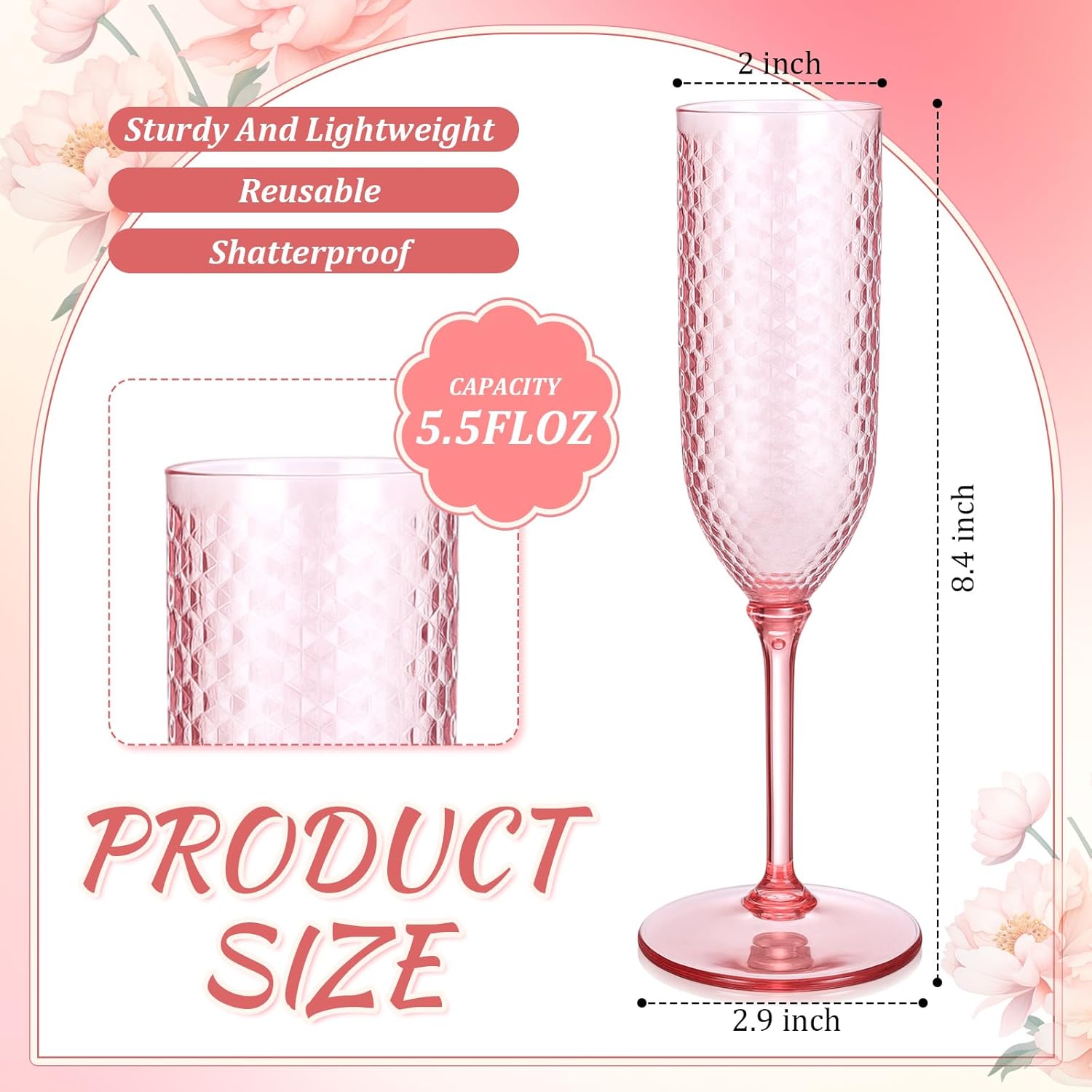 - Quality, Lightweight & Portable: Crafted from plastic, these disposable champagne glasses combine durability with featherlight convenience; Say goodbye to broken glass—these reusable champagne flutes are ideal for outdoor parties, poolside sipping, or large-scale events and gathering (Note: Not suitable for boiling hot liquids, dishwasher use, or microwave use)