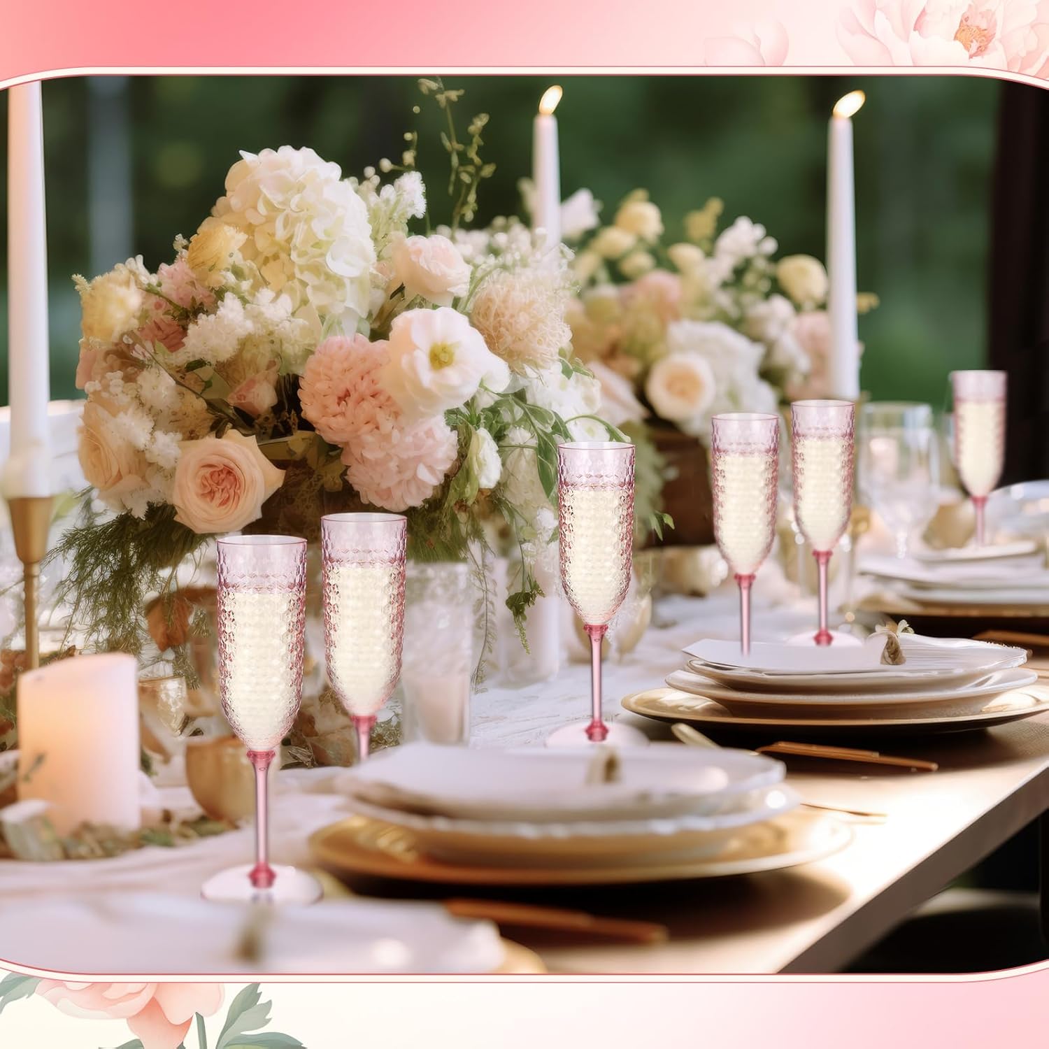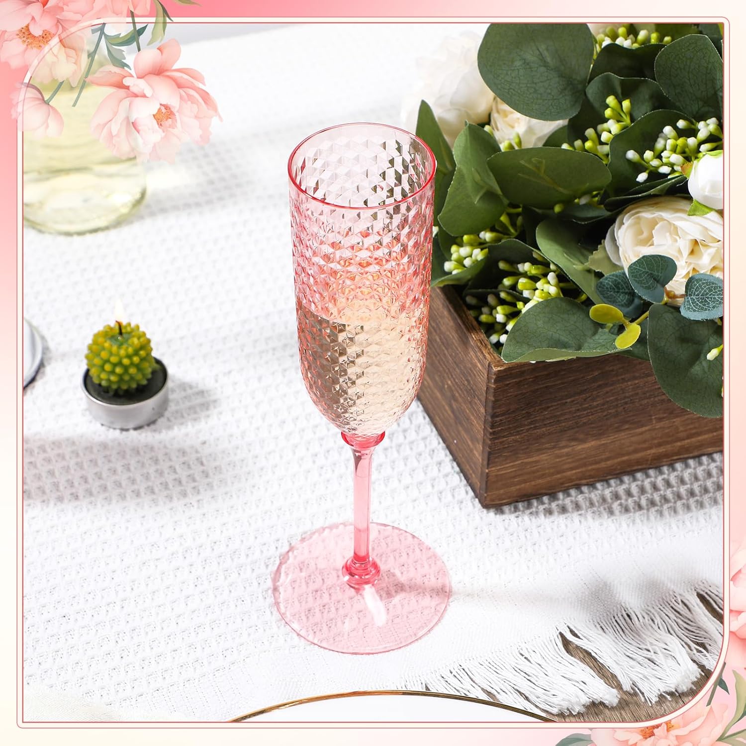 Remerry 48 Pack Detachable Plastic Champagne Flutes 5.5 oz Champagne Glasses Bulk Disposable Mimosa Glasses Reusable Wine Cups for Wedding Toasting Baby Shower Birthday Party New Years (Pink)