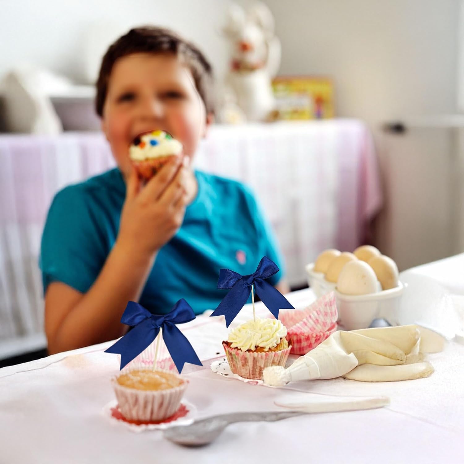 - --Premium Material: These Bow Cupcake Toppers are made of high quality polyester satin ribbon, very safe to put them on cakes, cupcakes, ice cream, fruits, pie, dessert, cheese or any dish and food appetizer you want to decorate bow theme party decorations.