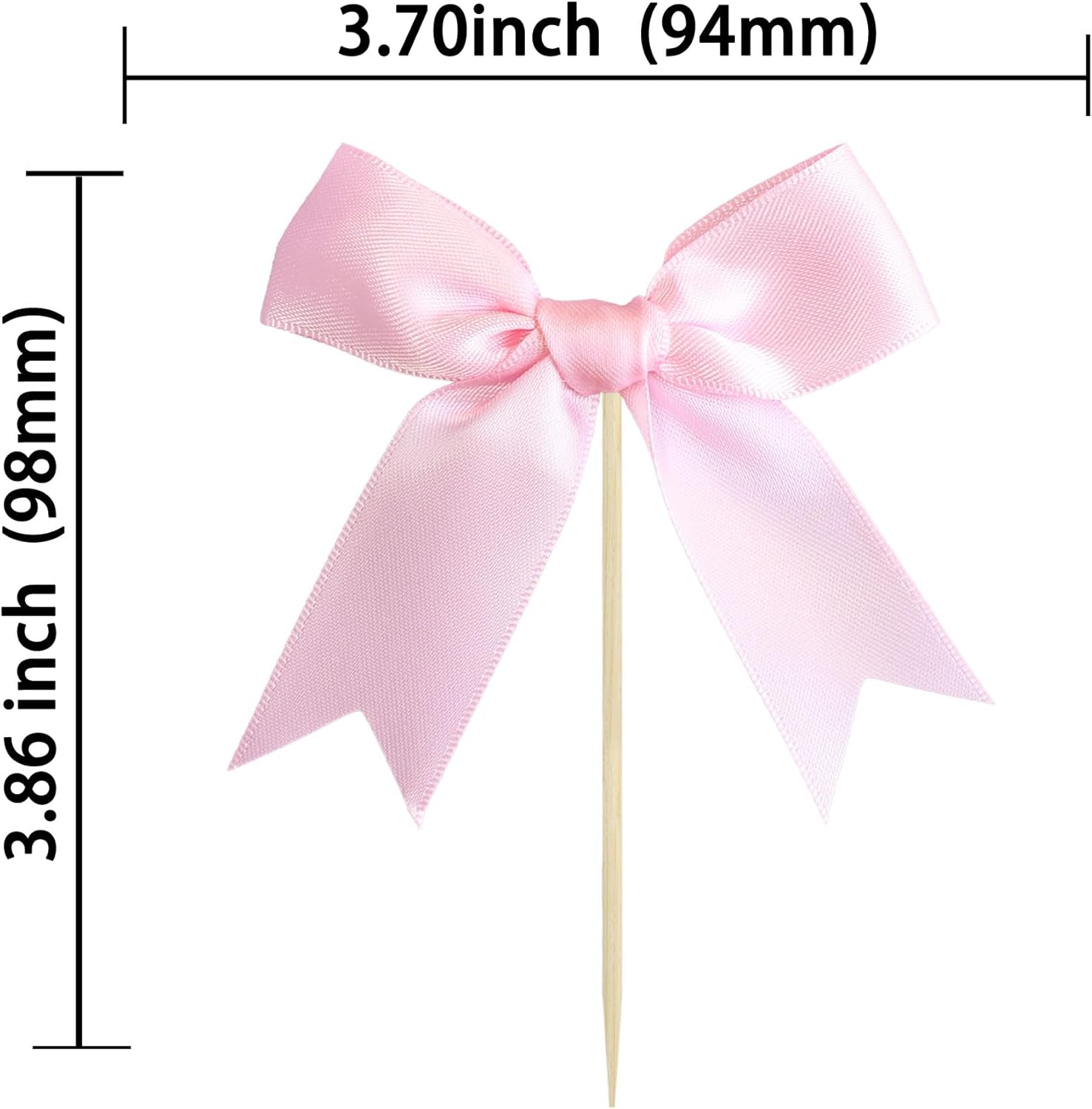 - --Premium Material: These Bow Cupcake Toppers are made of high quality polyester satin ribbon, very safe to put them on cakes, cupcakes, ice cream, fruits, pie, dessert, cheese or any dish and food appetizer you want to decorate bow theme party decorations.