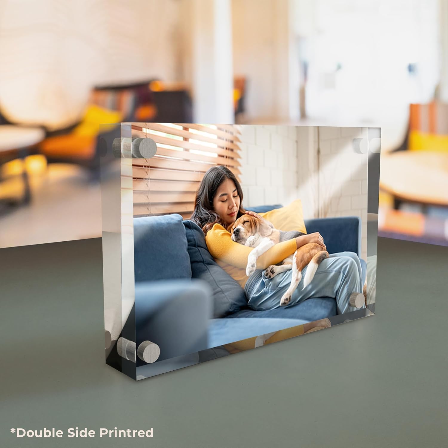 - Turn Memories Into Art — Celebrate your most meaningful moments with a modern acrylic photo block that reflects your story. Designed to display two images back-to-back, it brings a personal and artistic touch to any workspace, shelf, or dresser.