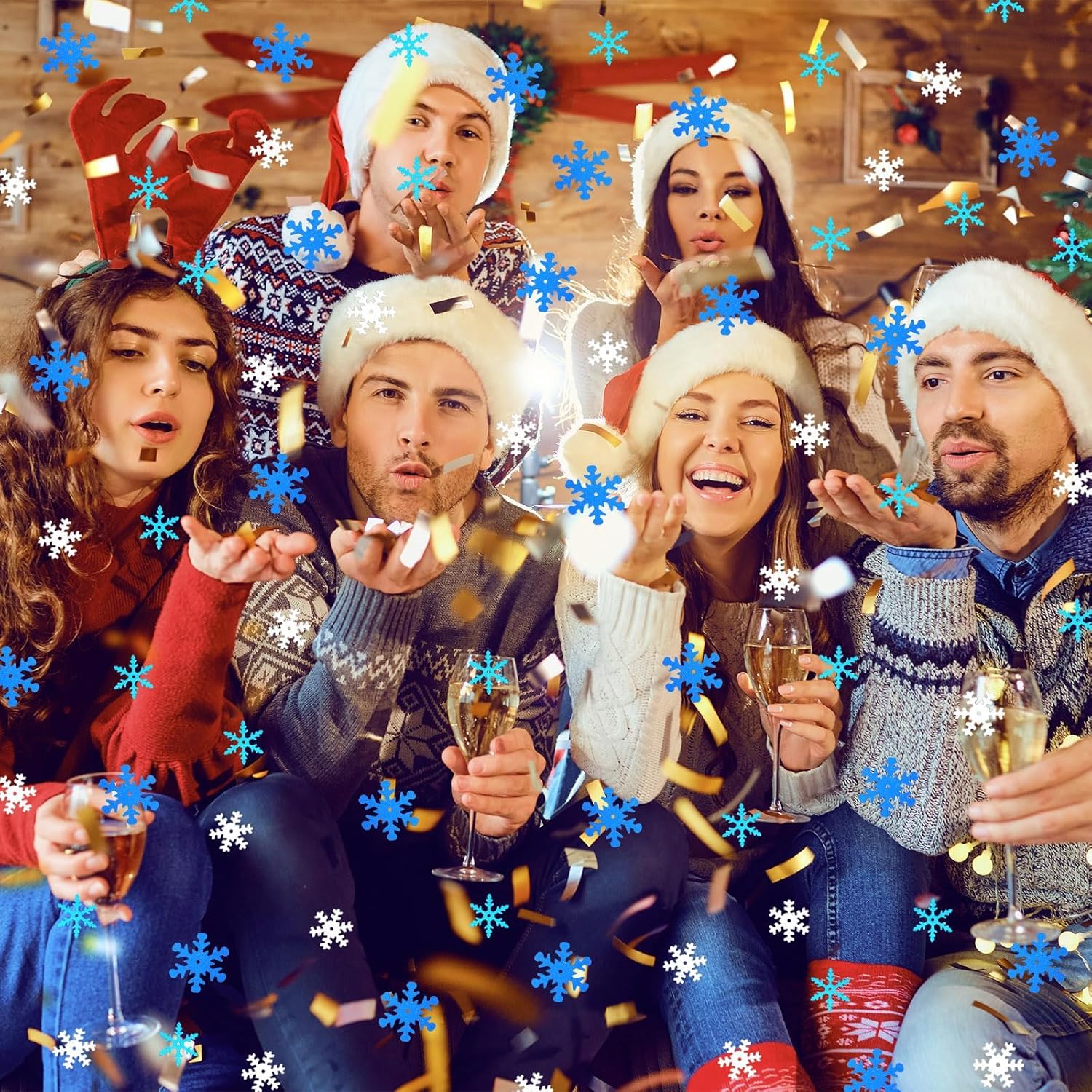 - Festival Winter Decor: Create a magical atmosphere with dazzling snowflake confetti, featuring shimmering winter confetti in elegant blue and gold. Winter confetti is ideal for scattering on tables, gifts, or party setups to add a sparkling touch