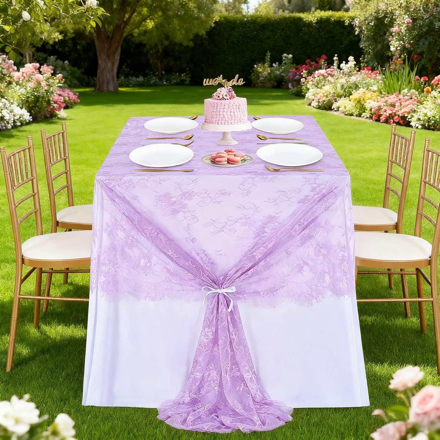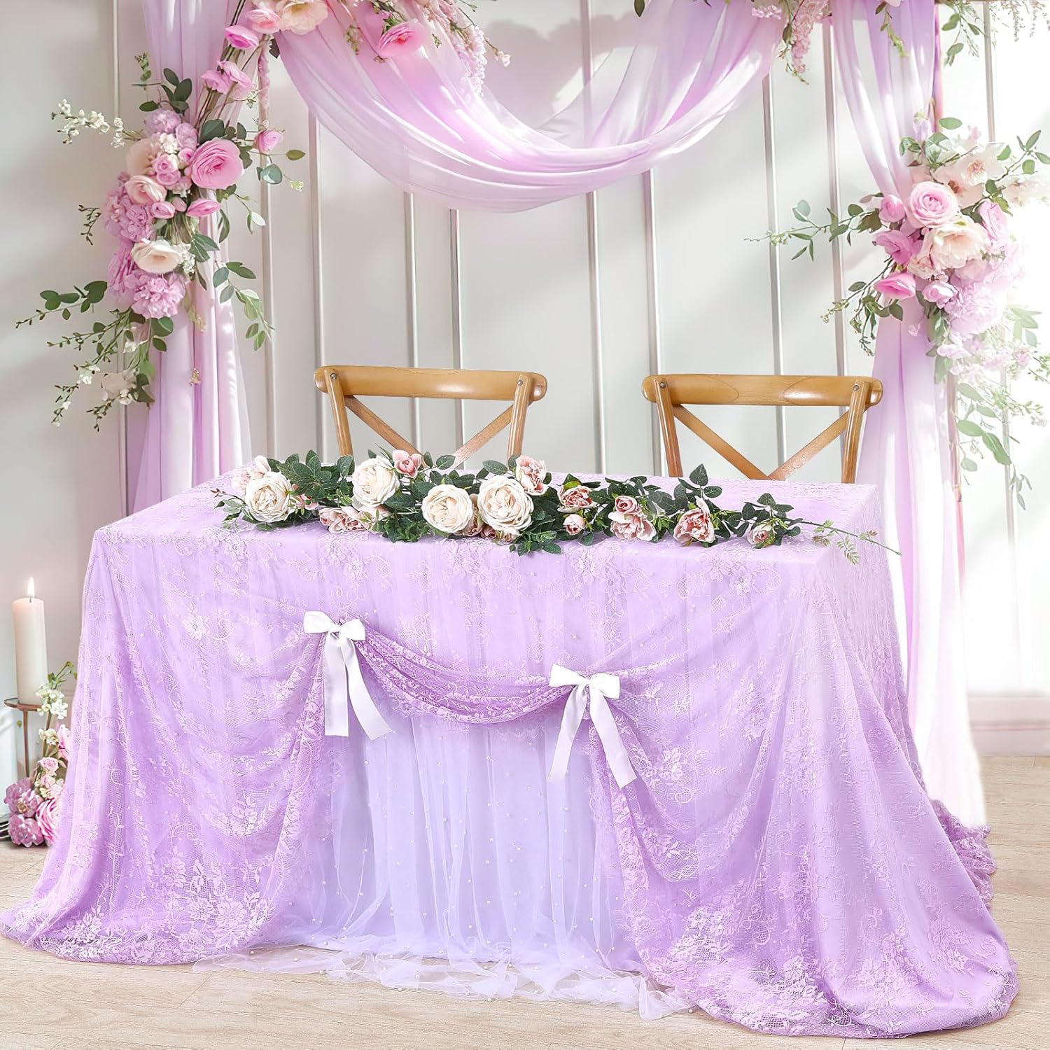 Light Purple Tablecloth Outdoor Lace Table Fabric 2pcs 60x120 Inch for Farmhouse Rustic Wedding Bridal Shower Party Decoration Rectangle Overlay Vintage Embroidered Reception Table Cloth Decor