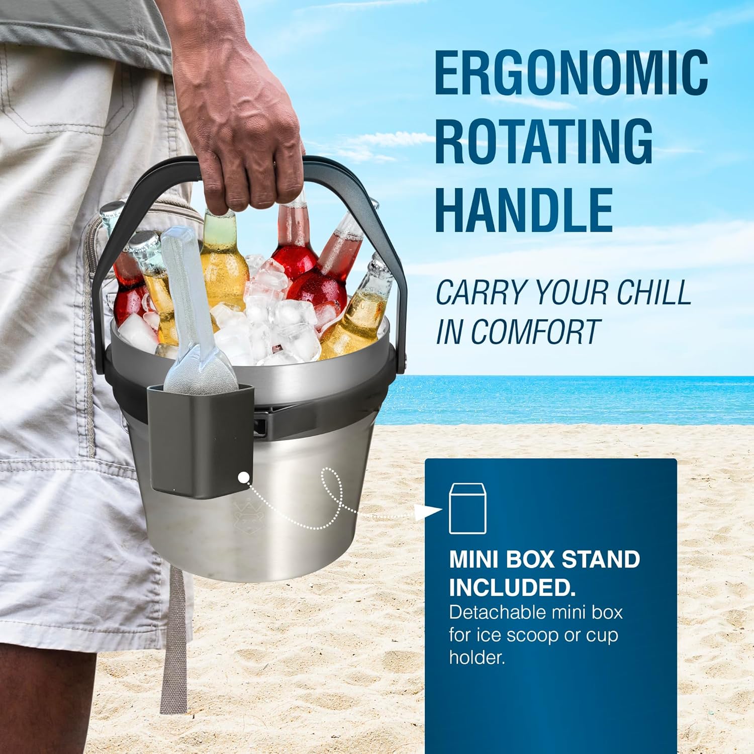 - Insulated Ice Bucket With Lid; Double-wall vacuum insulation keeps ice solid longer; A stylish and functional solution for cocktail bar, patio, or outdoor entertaining