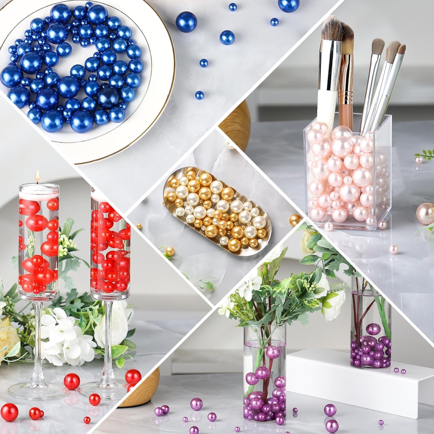 - Multi-Size Pearl Beads - Includes 260pcs metallic red&green pearl beads in three versatile sizes (6mm, 14mm, 18mm) for dynamic layering and a luxurious effect in vases or bowls