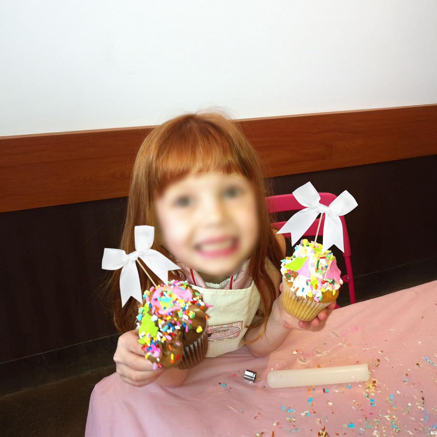 - 【NO DIY Required】: Bow Cupcake Toppers can put in the cake directly! Bow Cupcake Toppers save your time and super easy to use. You can easily dress up your cakes, yes! but don't stop there, put them into desserts, cookies, fruit pieces, appetizers, muffins and so much more!