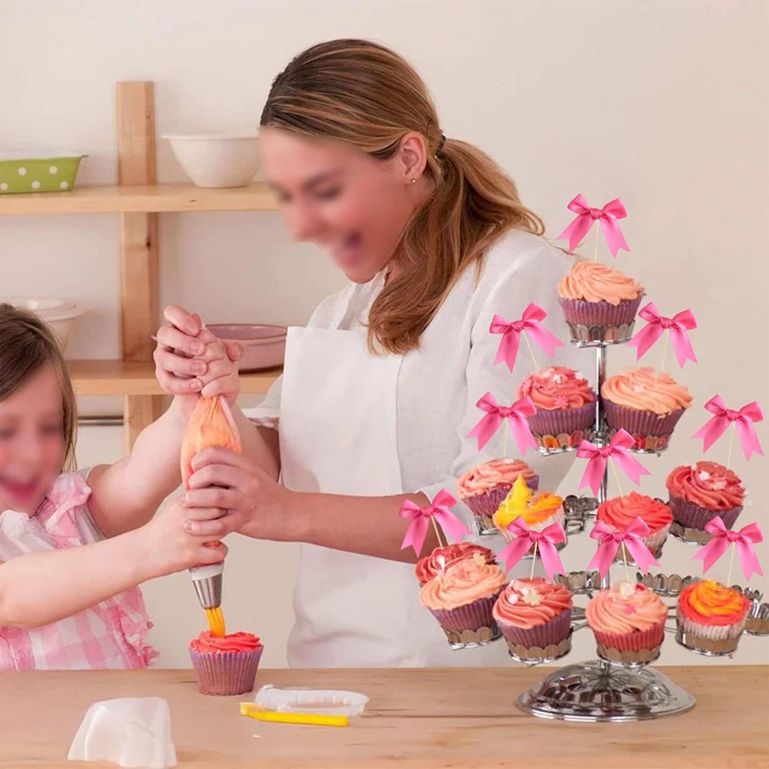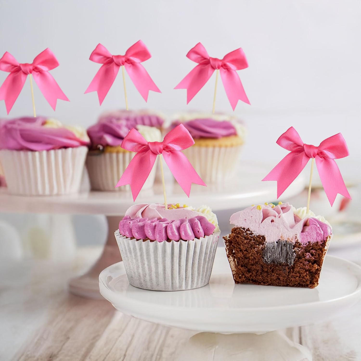 - 【NO DIY Required】: Bow Cupcake Toppers can put in the cake directly! Bow Cupcake Toppers save your time and super easy to use. You can easily dress up your cakes, yes! but don't stop there, put them into desserts, cookies, fruit pieces, appetizers, muffins and so much more!