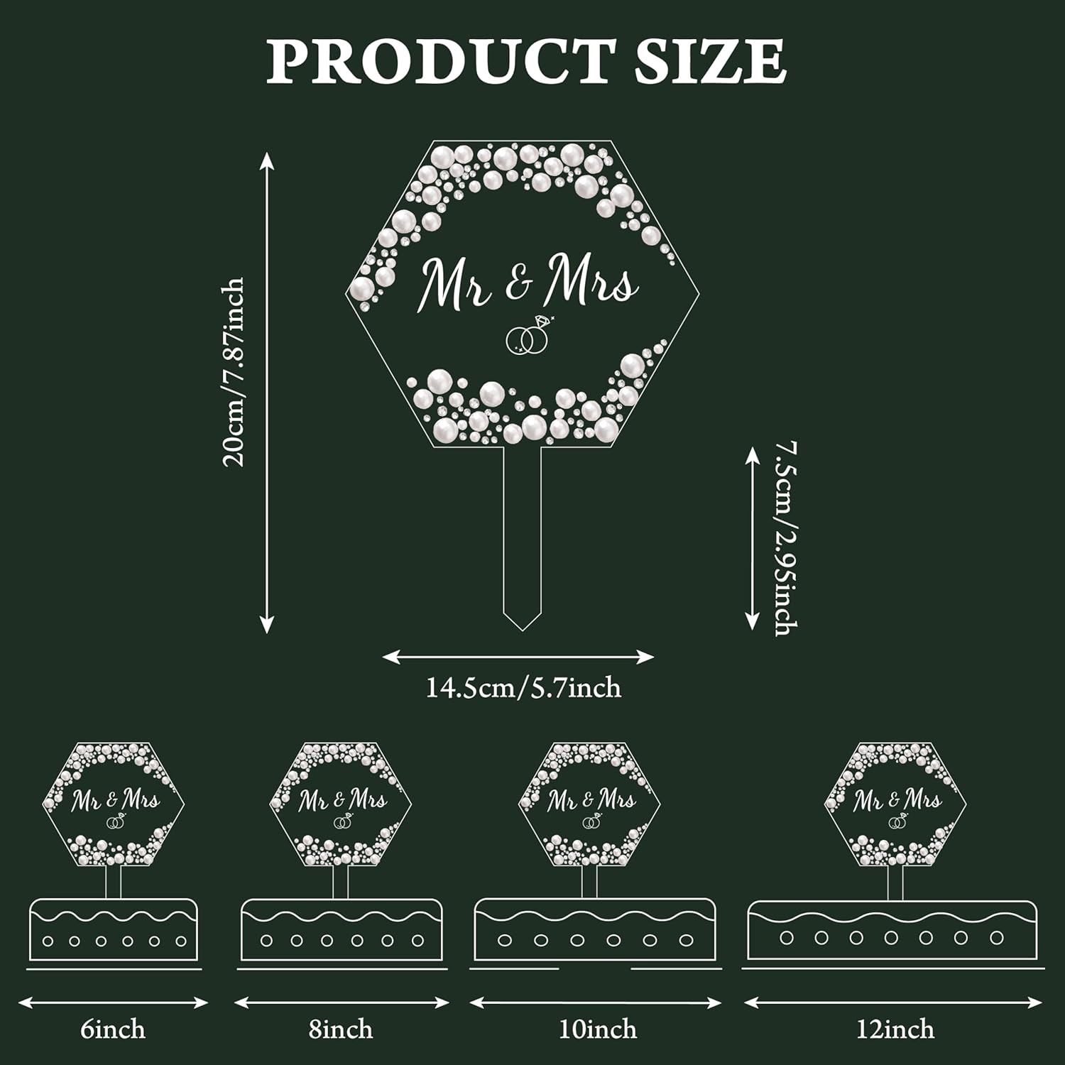- Design: Features crystal-clear acrylic adorned with faux pearls and rhinestones that radiate elegant brilliance, while its minimalist yet sophisticated design complements both modern and classic wedding cakes as a timeless focal point