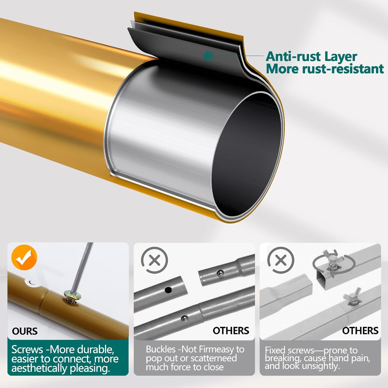 - 【 Professional-Grade Construction 】Heavy-duty rust-resistant metal frame with gold/white powder coating ensures indoor/outdoor durability. Thicker square tubes (19mm diameter) prevent bending, surpassing flimsy round-tube competitors.