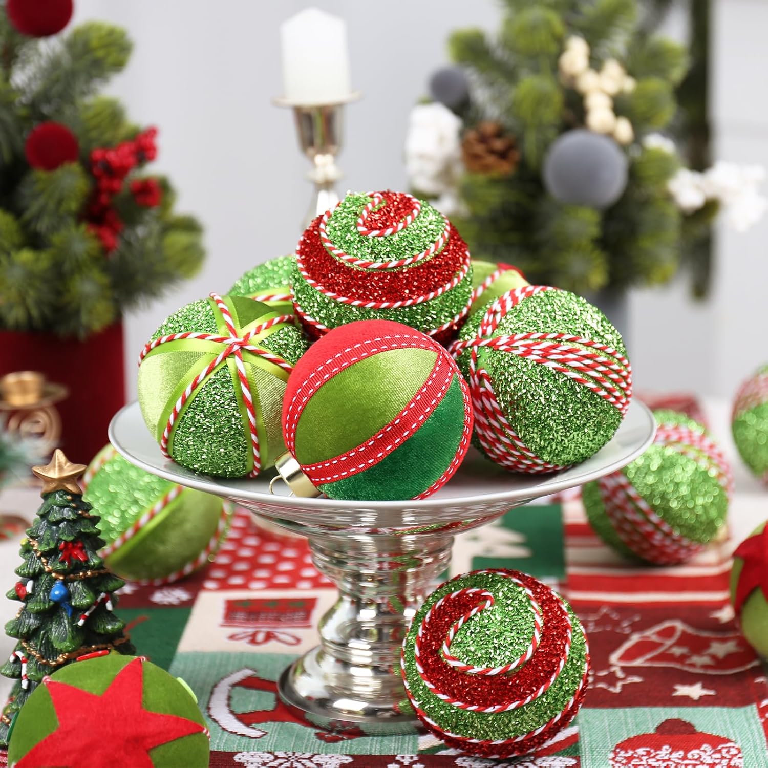 - CHRISTMAS ORNAMENTS: This Christmas ornaments set includes 15 brightly colored red and green Velvet Christmas spherical decorations, providing ample decorative elements to decorate your Christmas tree and convey a festive atmosphere to the entire home.