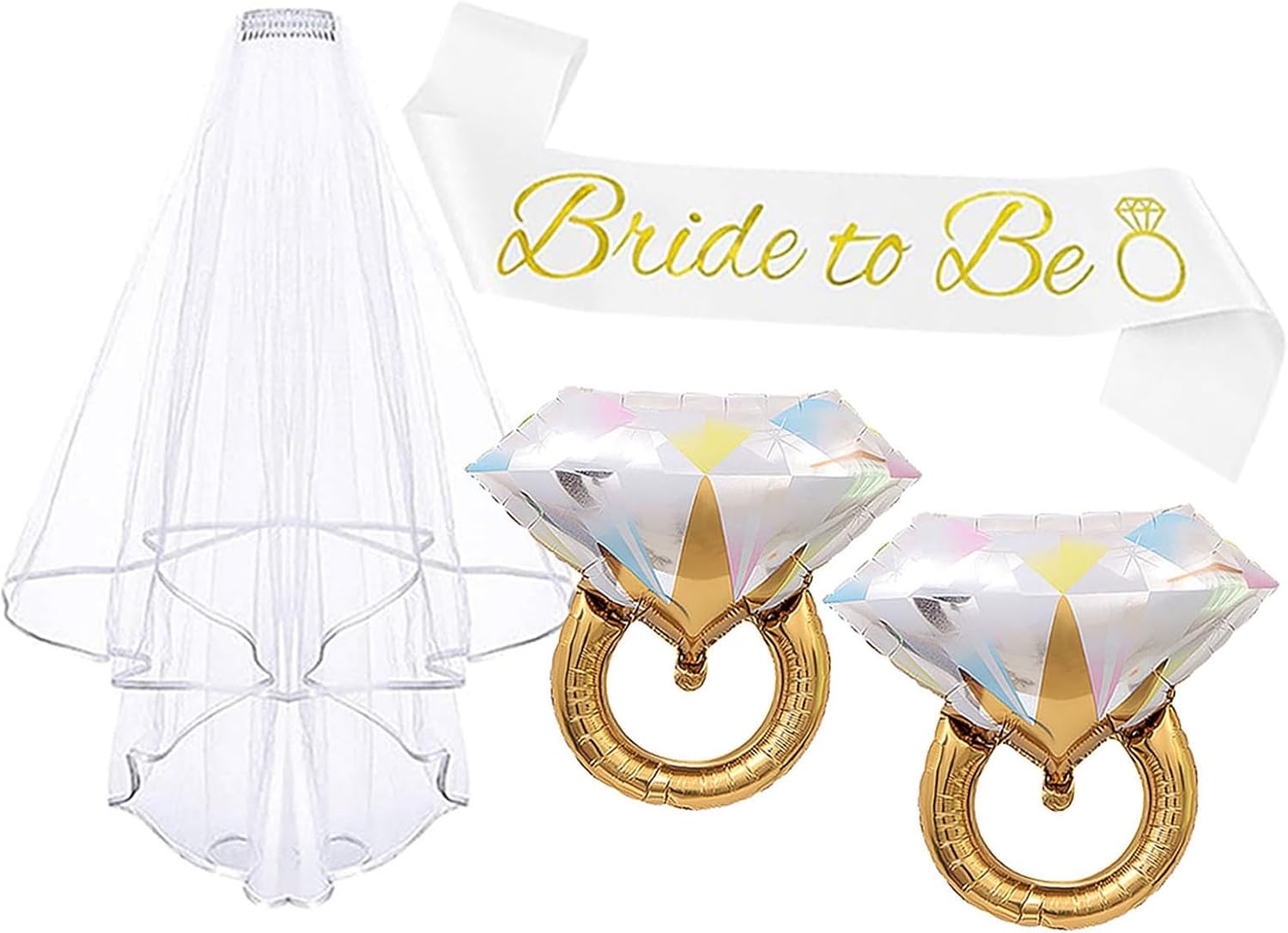 - 【Bridal Shower Accessories】You will receive: 1 x bride to be sash, 1x white layer veil, 2 x diamond ring foil balloons(26 x 24"). This bridal shower set will be the most beautiful accessory for bride to be and the most thoughtful gift for her