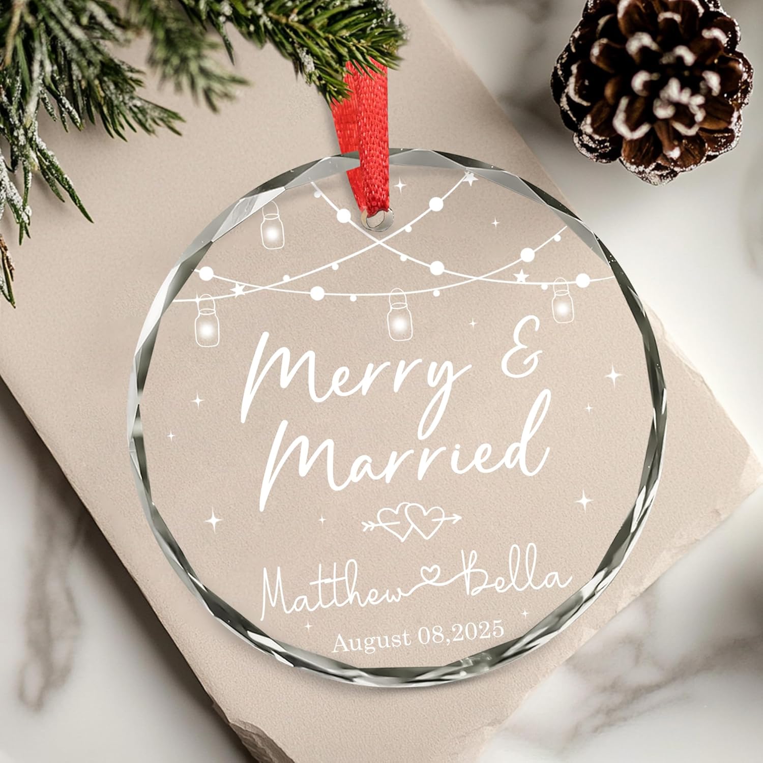 Personalized Wedding Christmas Ornament for Couples 2025 - The Year We Became Mr & Mrs - Merry & Married Christmas Ornaments - Wedding Gifts For Newlywed Couple, Bride And Groom